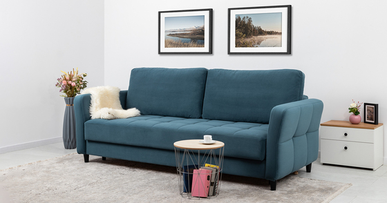 Диван-кровать прямой Черри ТД 285 велюр Irida 07 синий, Эвита пистачио ментоловый
