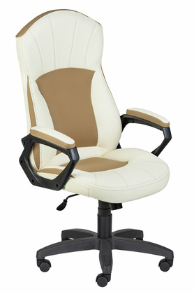 Кресло на колесах Канц ультра кожзам бежевый, крестовина пластик, подлокотники с мягкими накладками, механизм качания