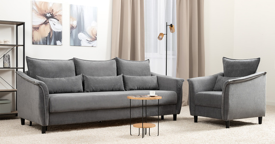 Диван-кровать прямой Наоми ТД 482 шенилл графитовый серый, микровелюр серый