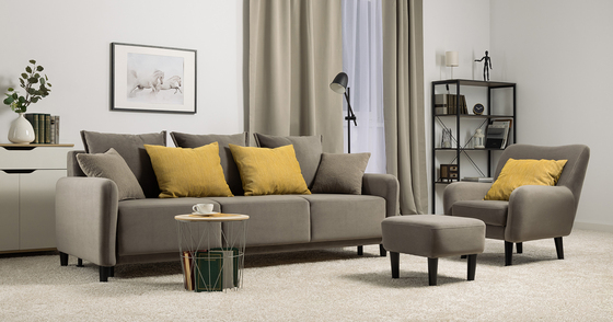 Диван-кровать прямой Оксфорд 714 композиция 3, STORM 8 горчичный, модульная система