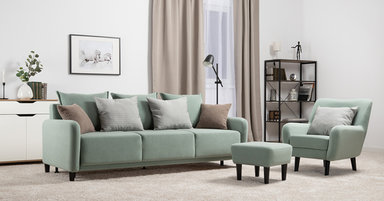 Диван-кровать прямой Оксфорд 715 композиция 3, STORM 9 мятный, модульная система