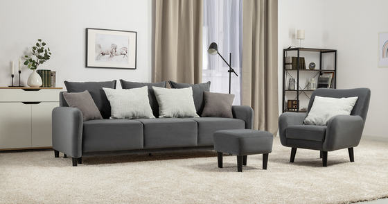 Диван-кровать прямой Тэдди 1506 композиция 1, букле Pique 011 серый, модульная система