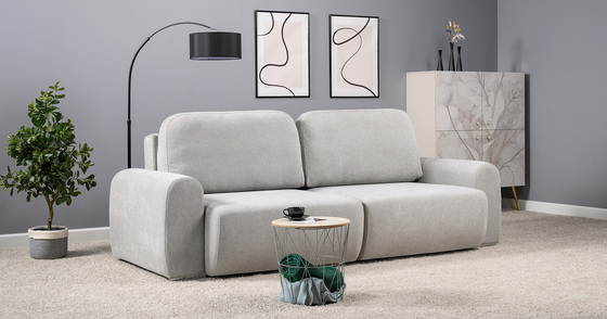 Диван-кровать прямой Тэдди 1505 композиция 1, букле Pique 010 светло-серый, модульная система
