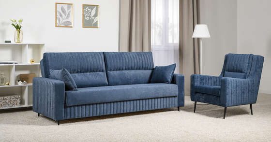 Диван-кровать прямой Дакота ТД 584 велюр Vendetta 24 синий, Riga 1598 z1 col 20 серо-голубой, Romeo 06