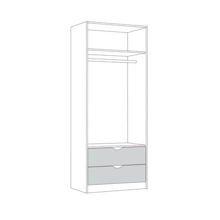 Удобный шкаф для одежды дополнен двумя выдвижными ящиками, что значительно увеличивает функциональность изделия.