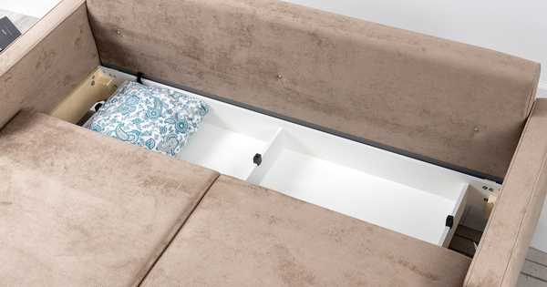 Объемные подушки дивана обеспечивают эргономичную посадку, а ровное спальное место - полноценный ночной отдых.