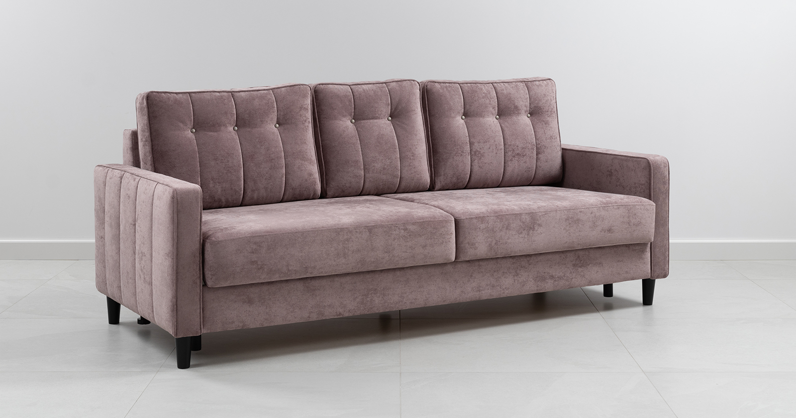 Объемные подушки дивана обеспечивают эргономичную посадку, а ровное спальное место - полноценный ночной отдых.