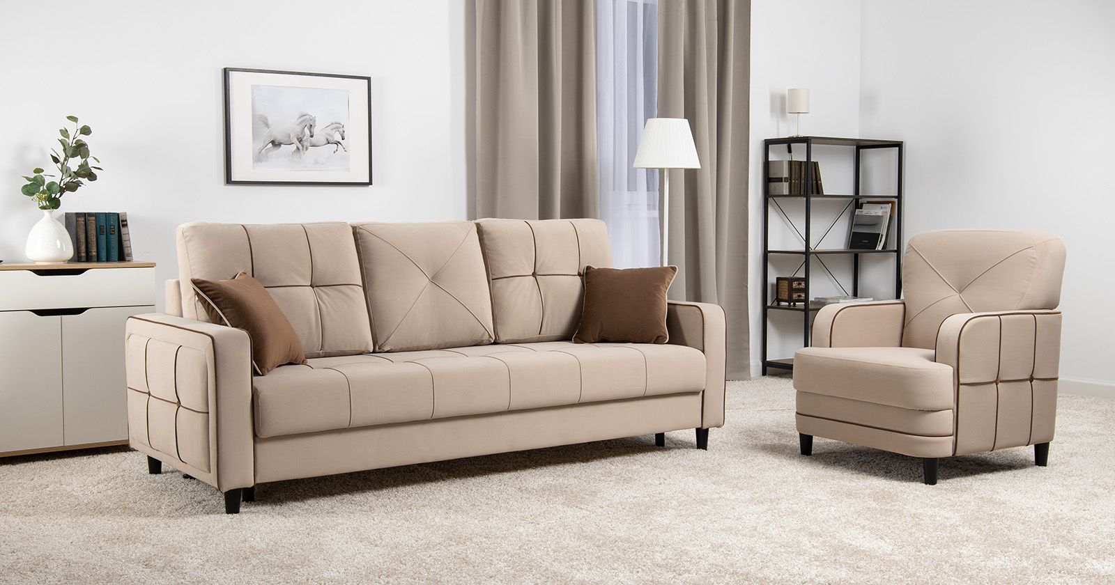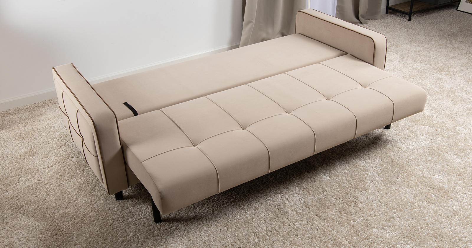 Диван-кровать прямой Черри ТД 284 велюр Irida 02 светло-бежевый, Эвита шоколад бежево-коричневый