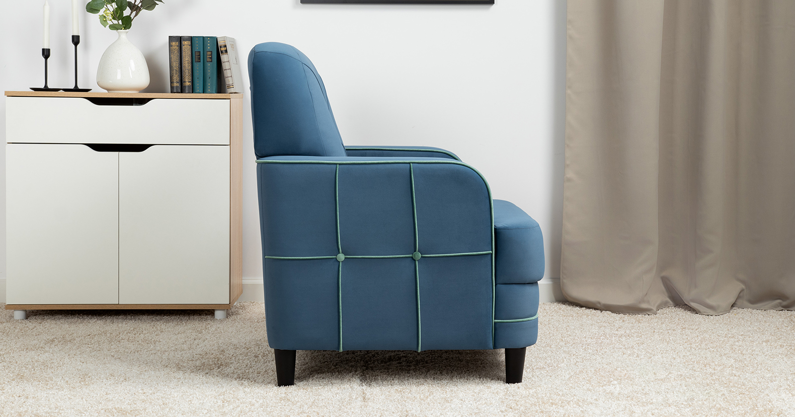 Кресло для отдыха Черри ТК 285 велюр Irida 07 синий, Эвита пистачио ментоловый