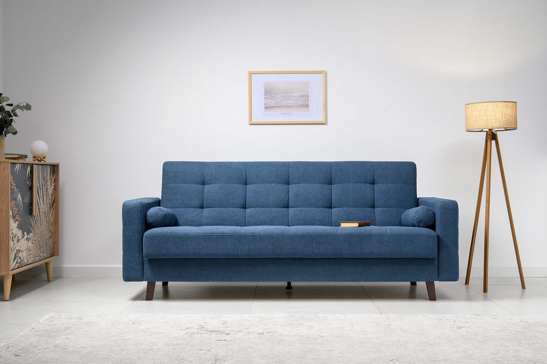 Диван-кровать прямой Тэдди 1504 композиция 1, букле Pique 009 синий, модульная система