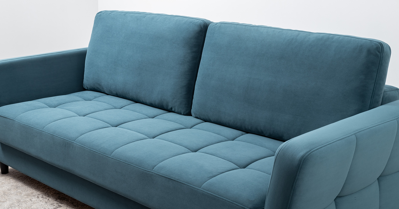 Ровная отстрочка по всему периметру сидения и стежка? создающая эффект пышности выделенных форм. Подлокотники прямые с изгибом в наружные стороны, с выраженной стежкой по лицевой стороне. Стежка на посадочной части дивана.