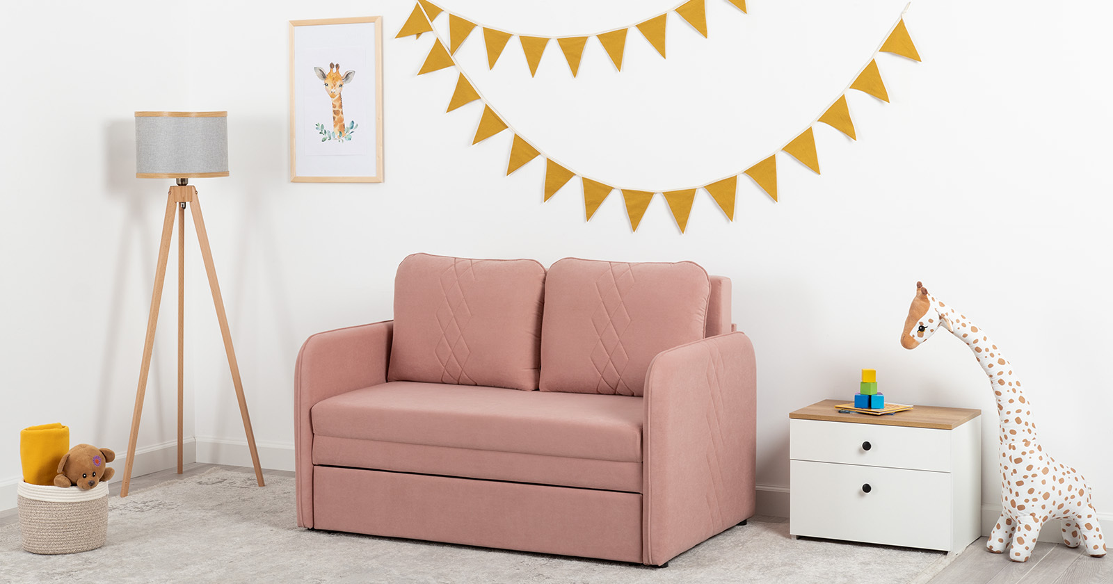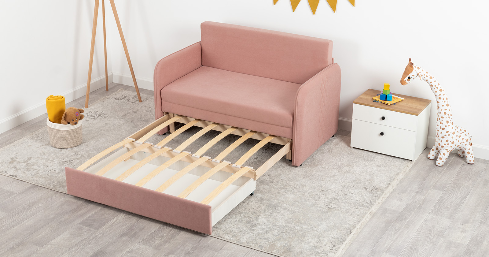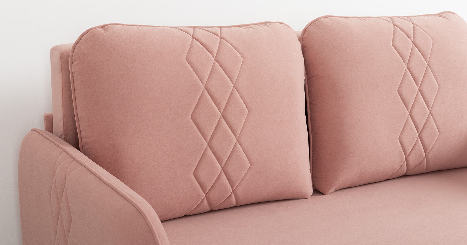 Стильный компактный диван для детской и гостиной. При своих скромных размерах он трансформируется в полноценное спальное место для детей и подростков. Лаконичный дизайн в виде декоративной стежки подчеркивает фактуру велюра, а небольшие размеры позволят разместить его в любом пространстве.