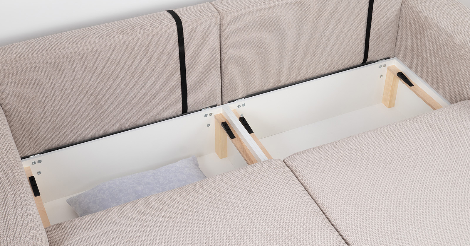 «Компоновка 2» состоит из: оттоманки арт. ТО, двух диванов арт. ТД, широкого подлокотника арт. ТБ, широкого подлокотника с ящиком арт. ТБ, трех приспинных подушек и двух декоративных подушек.