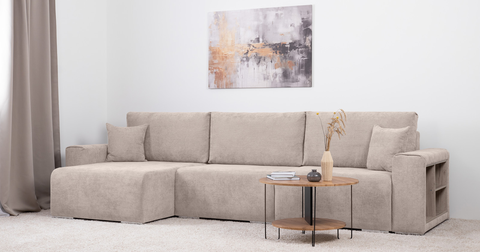 Диван-кровать угловой Оксфорд 710 композиция 2, шенилл Muza 04 светло-бежевый, модульная система, сборка на любую сторону