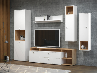 Гостиная Альба композиция 1 дуб золотой CRAFT, белый премиум, без подсветки