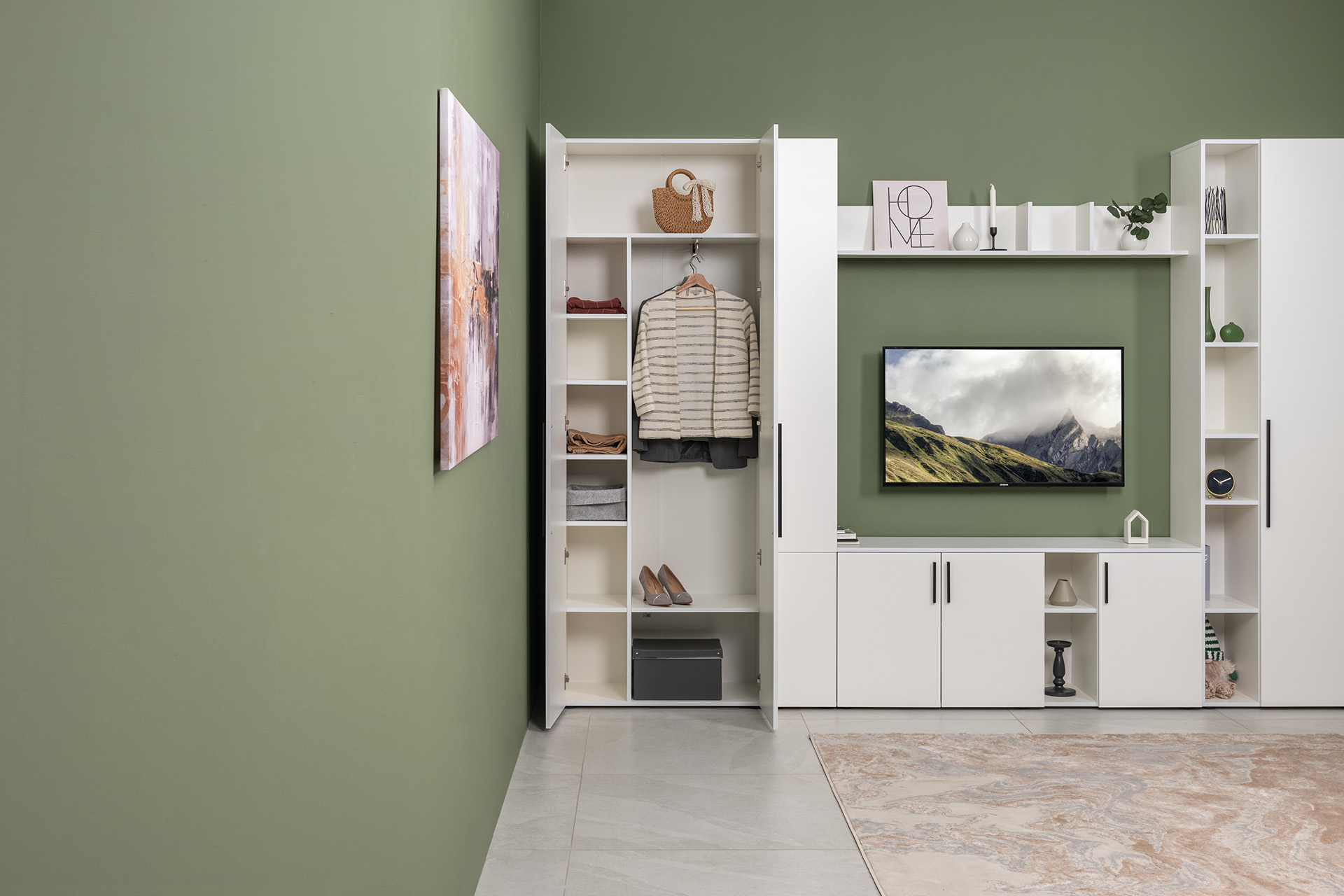 Гостиная Эйр композиция 1 белый PE шагрень, собирается на любую сторону