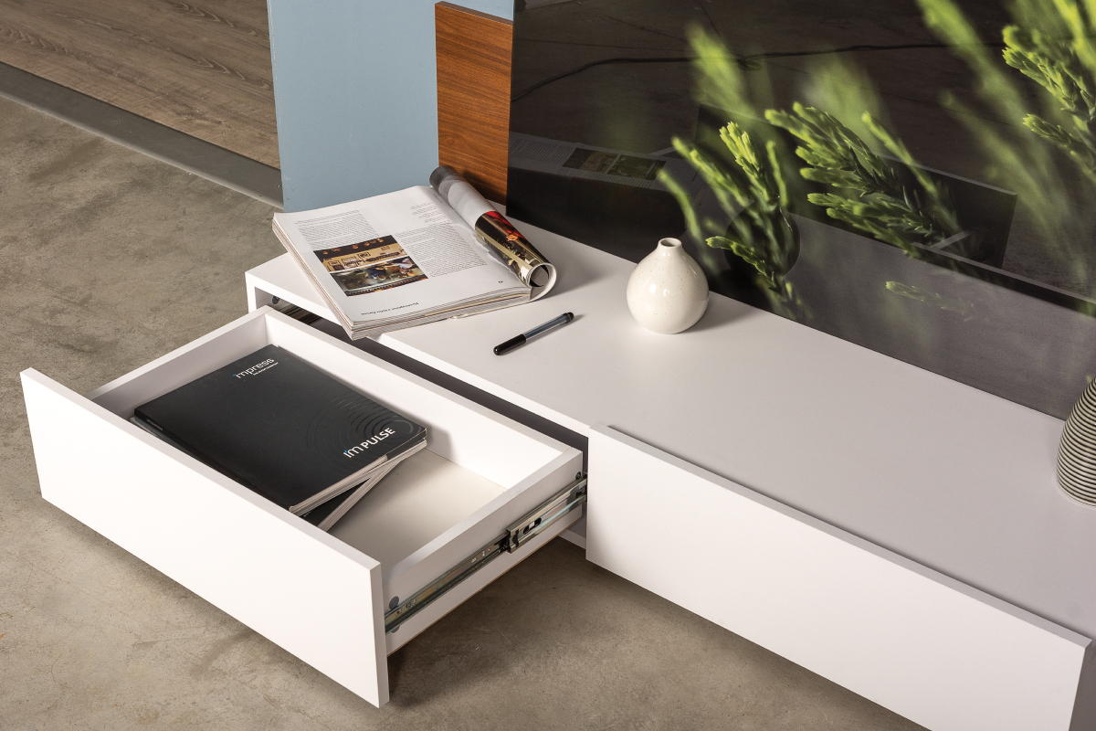 Тумба под ТВ в гостиную 13.272 белый РЕ шагрень, интра