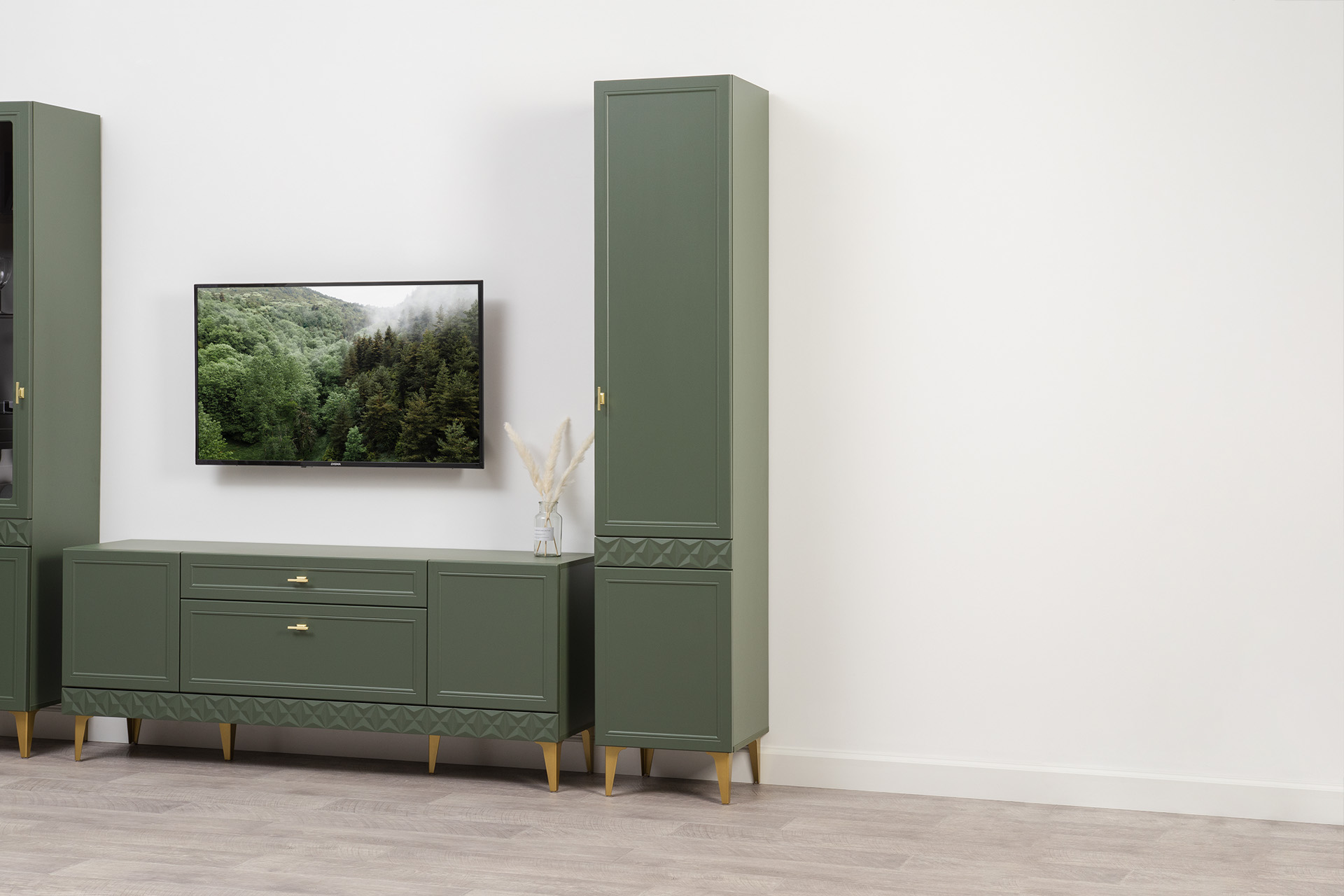 Гостиная Марион композиция 1 дымчатый зеленый K521, олива шагрень AG 1050 ПВХ, белый PE шагрень (собирается на любую сторону)