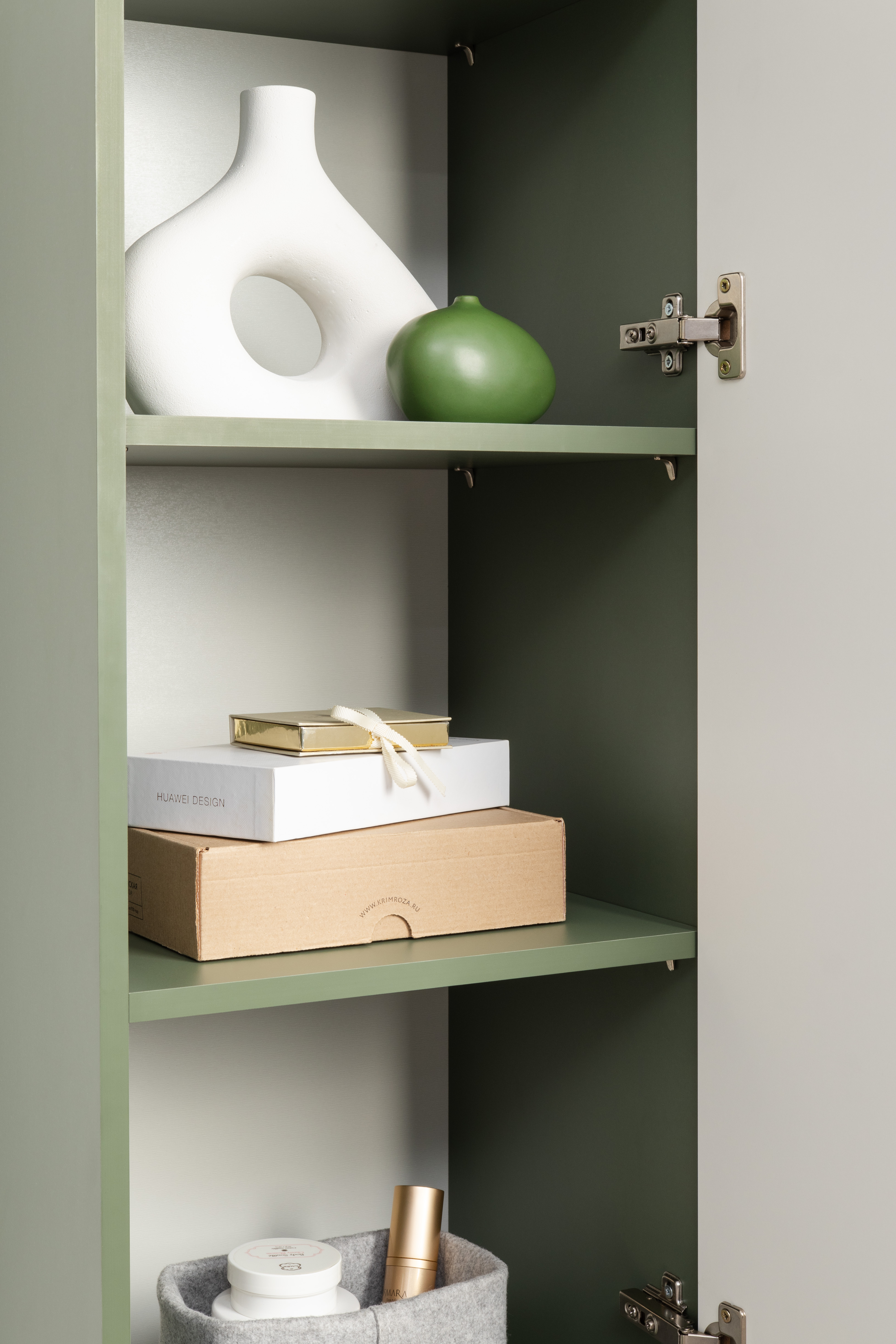 Шкаф-пенал Марион 16.333.01 дымчатый зеленый K521, олива шагрень AG 1050 ПВХ (собирается на любую сторону)
