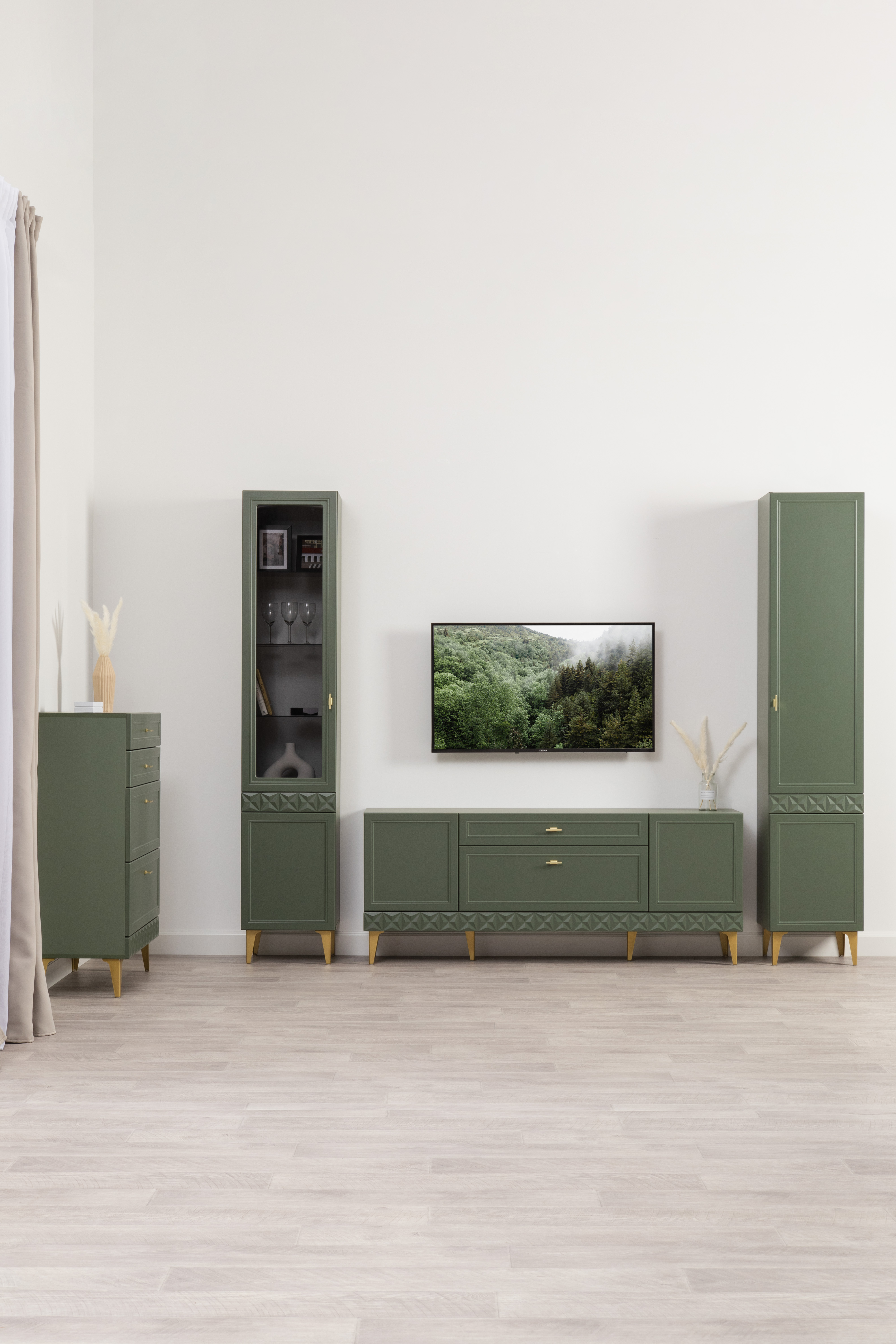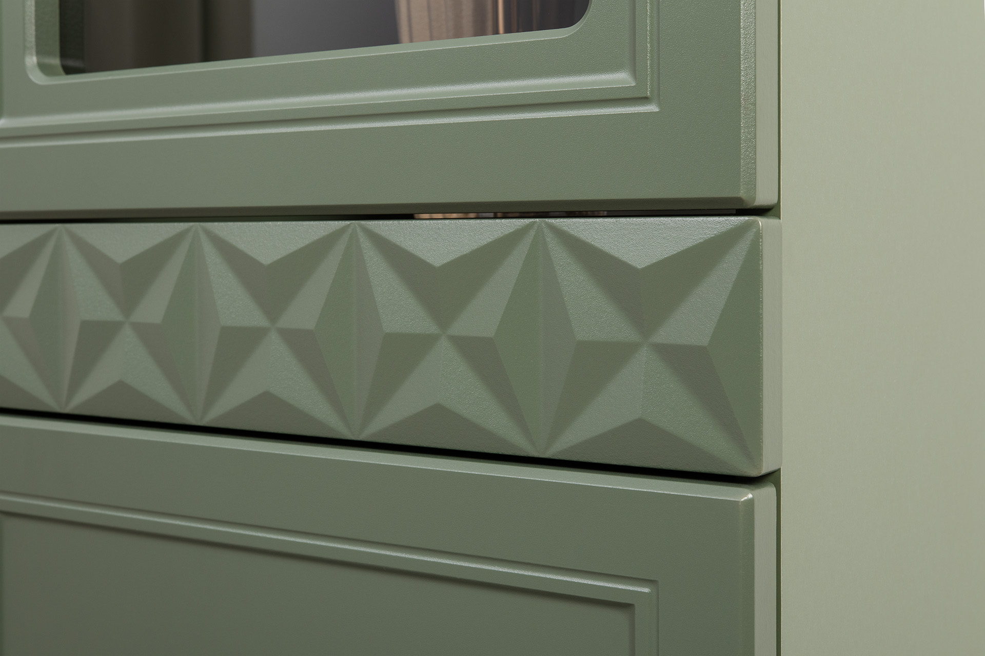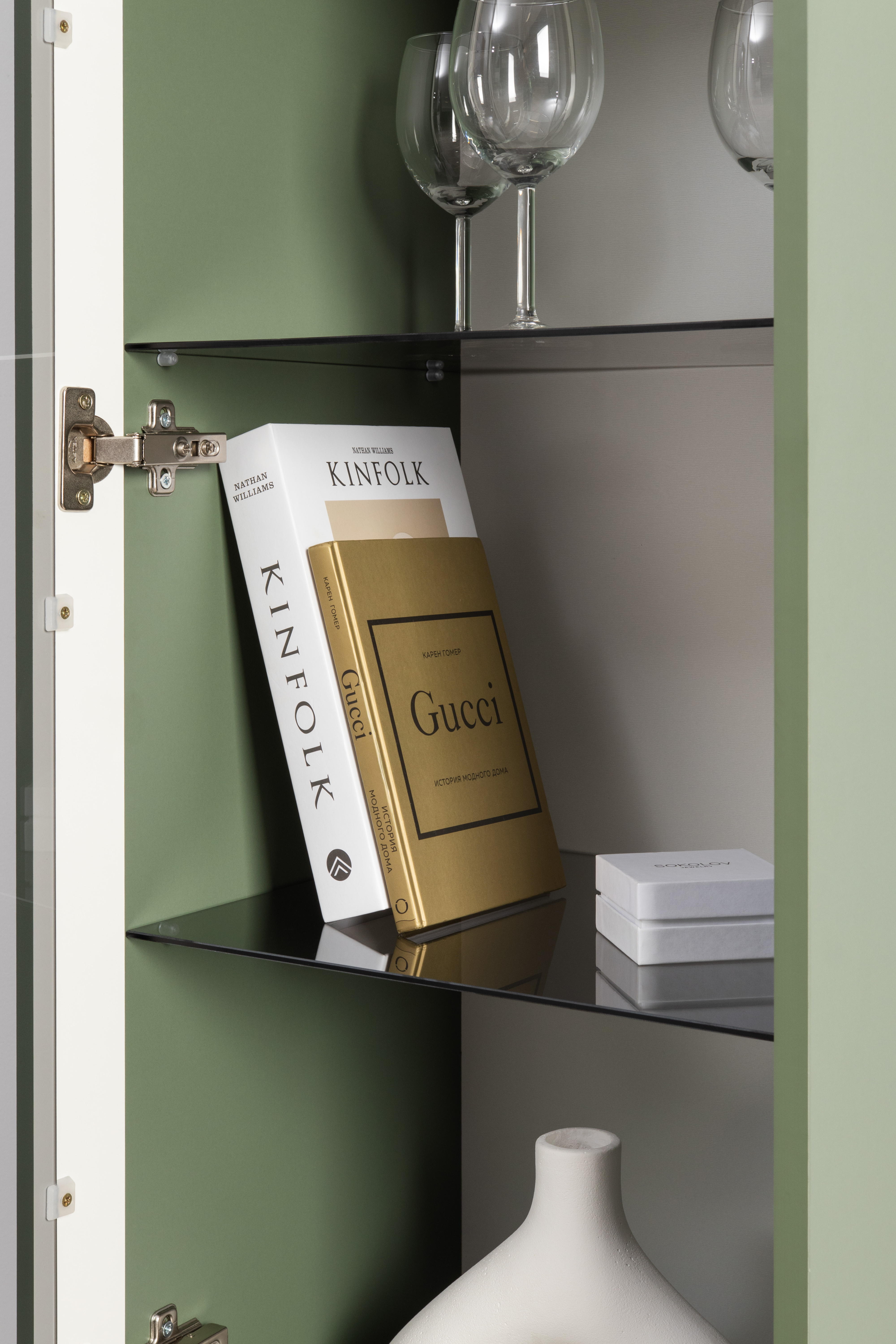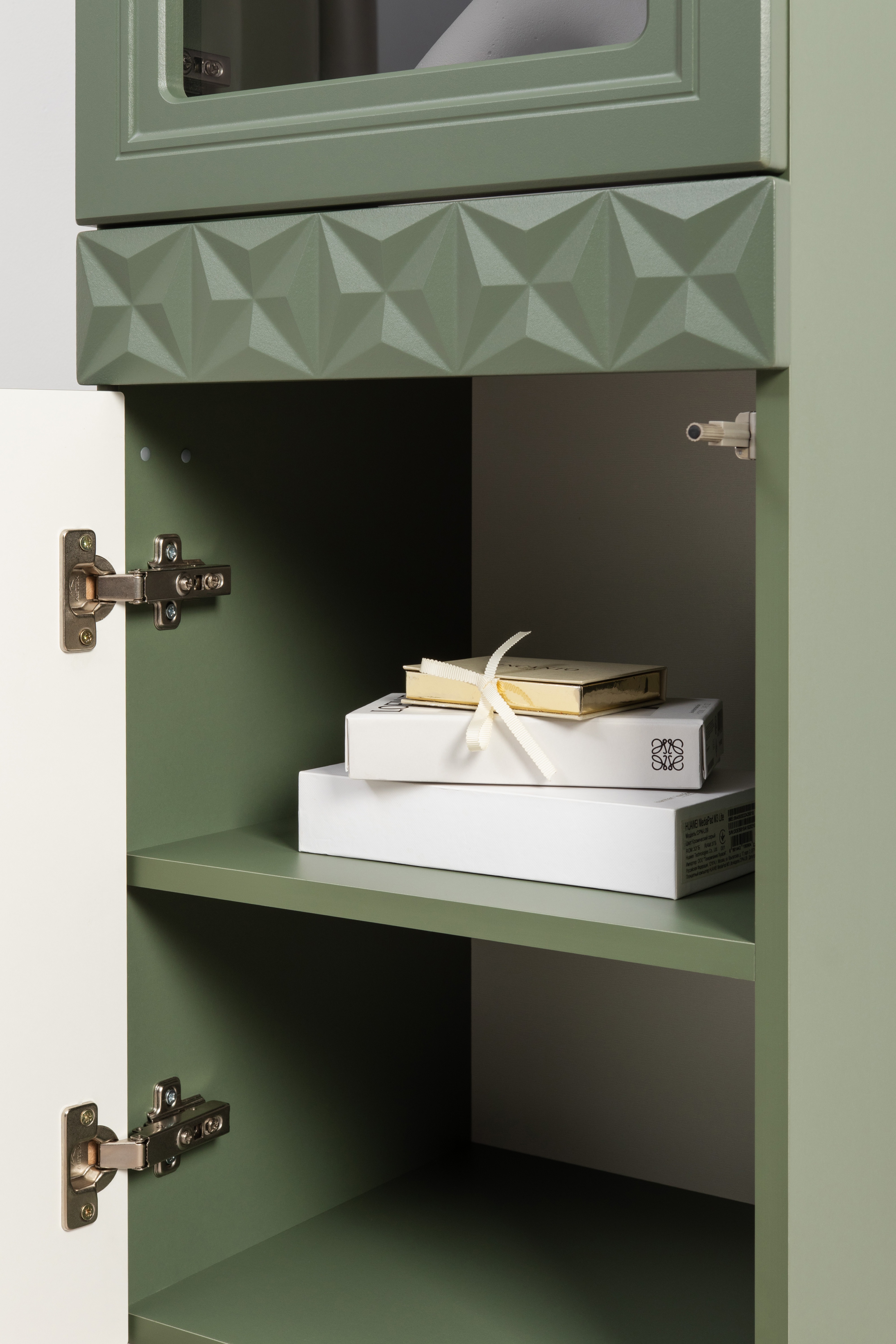 Шкаф-витрина Марион 16.397.02 дымчатый зеленый K521, олива шагрень AG 1050 ПВХ