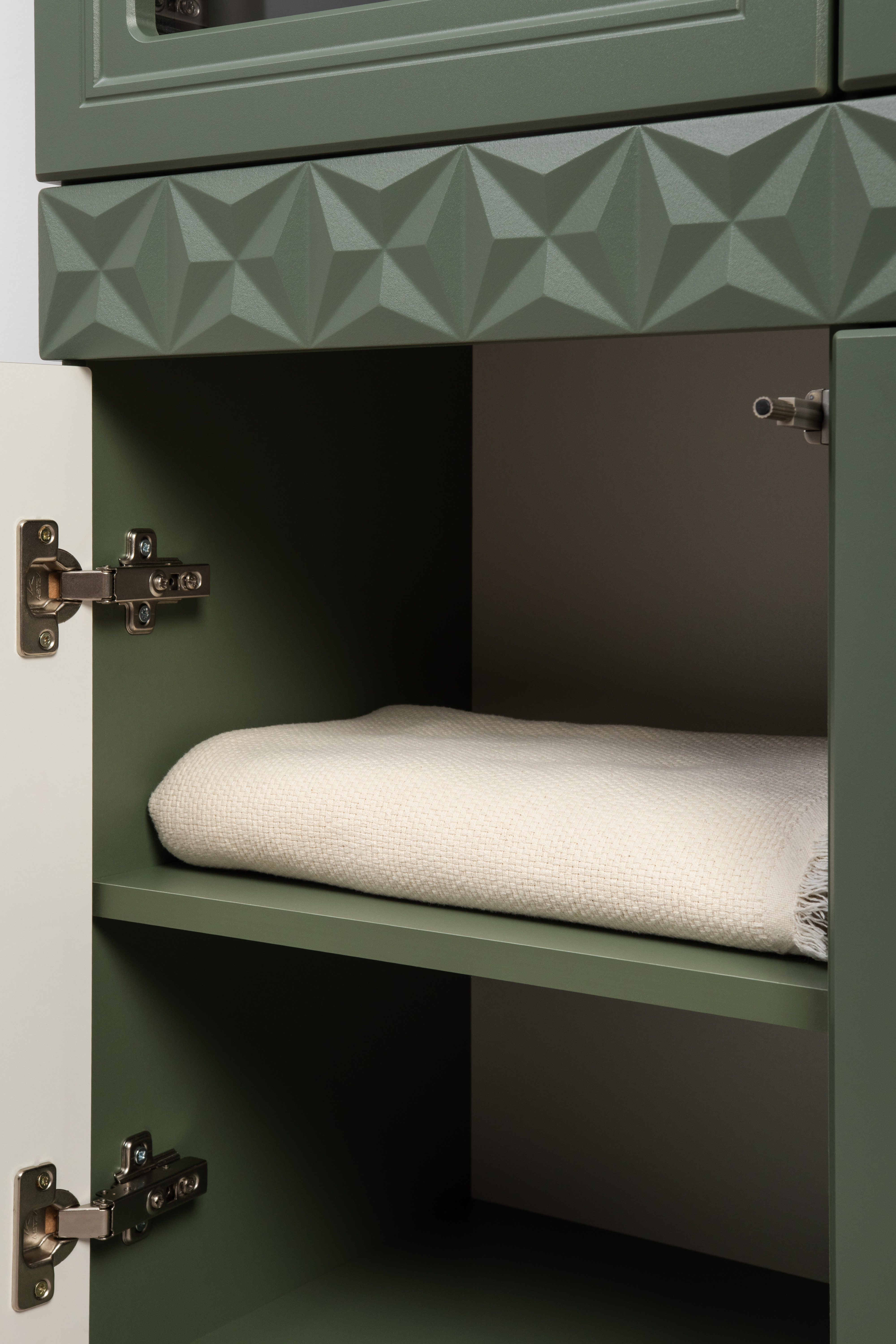 Комод Марион 16.249 дымчатый зеленый K521, олива шагрень AG 1050 ПВХ, белый PE шагрень