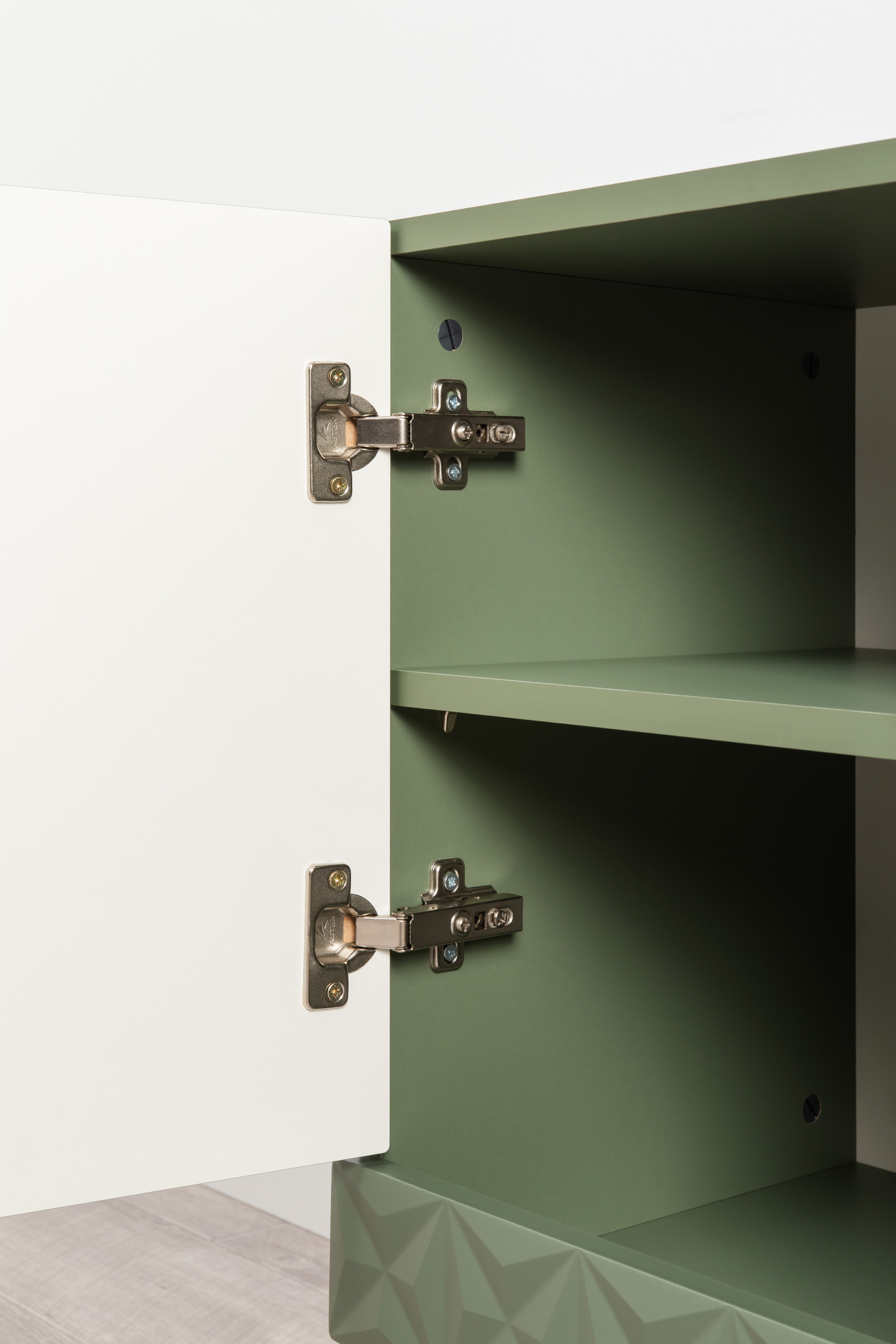 Тумба Марион 16.167 дымчатый зеленый K521, олива шагрень AG 1050 ПВХ, белый PE шагрень