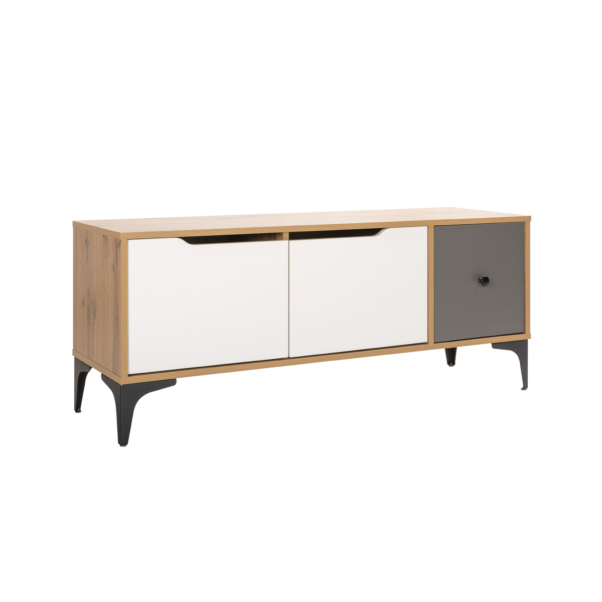Тумба под ТВ в гостиную Вайс 13.270.01 дуб золотой CRAFT, милк софт ПВХ, темно-серый