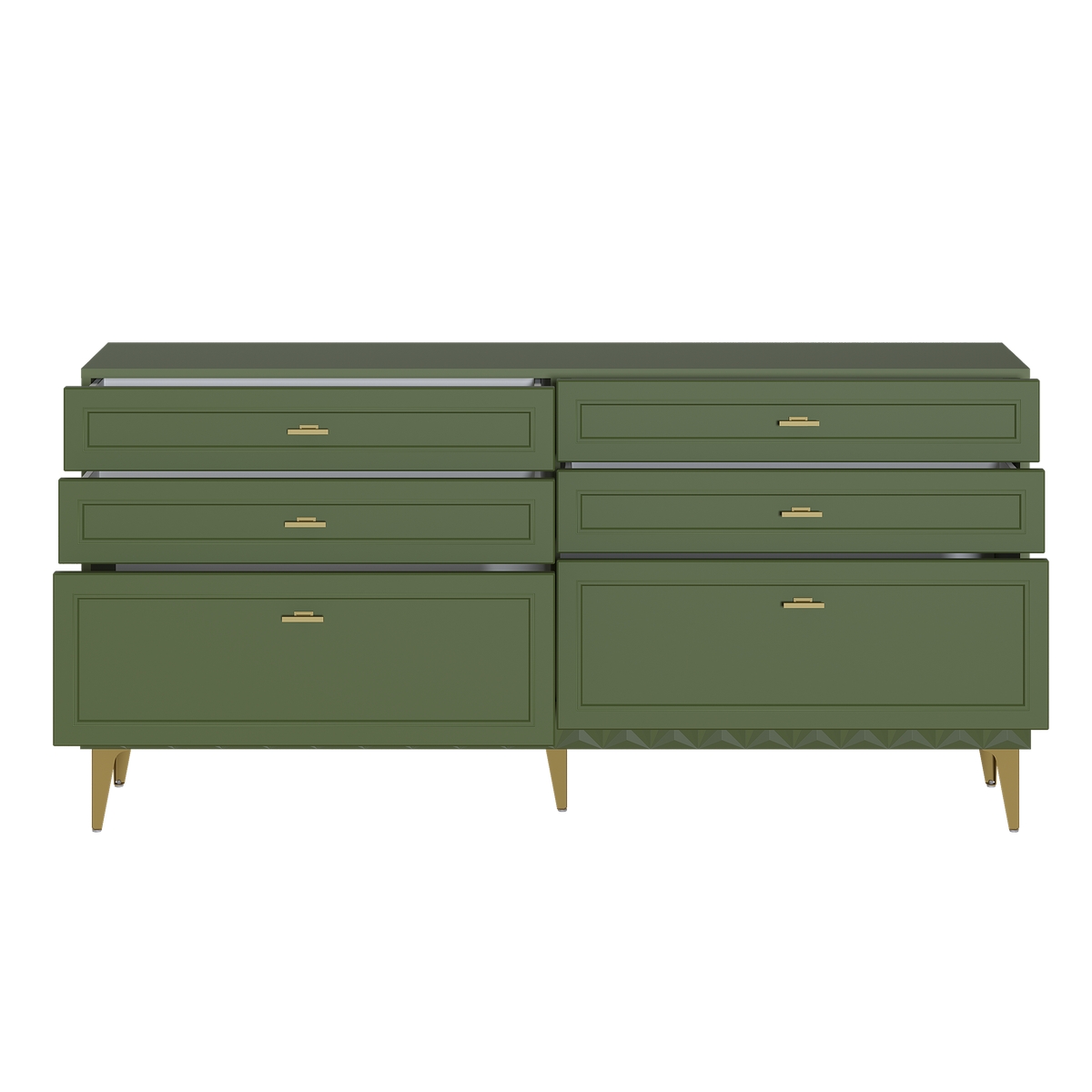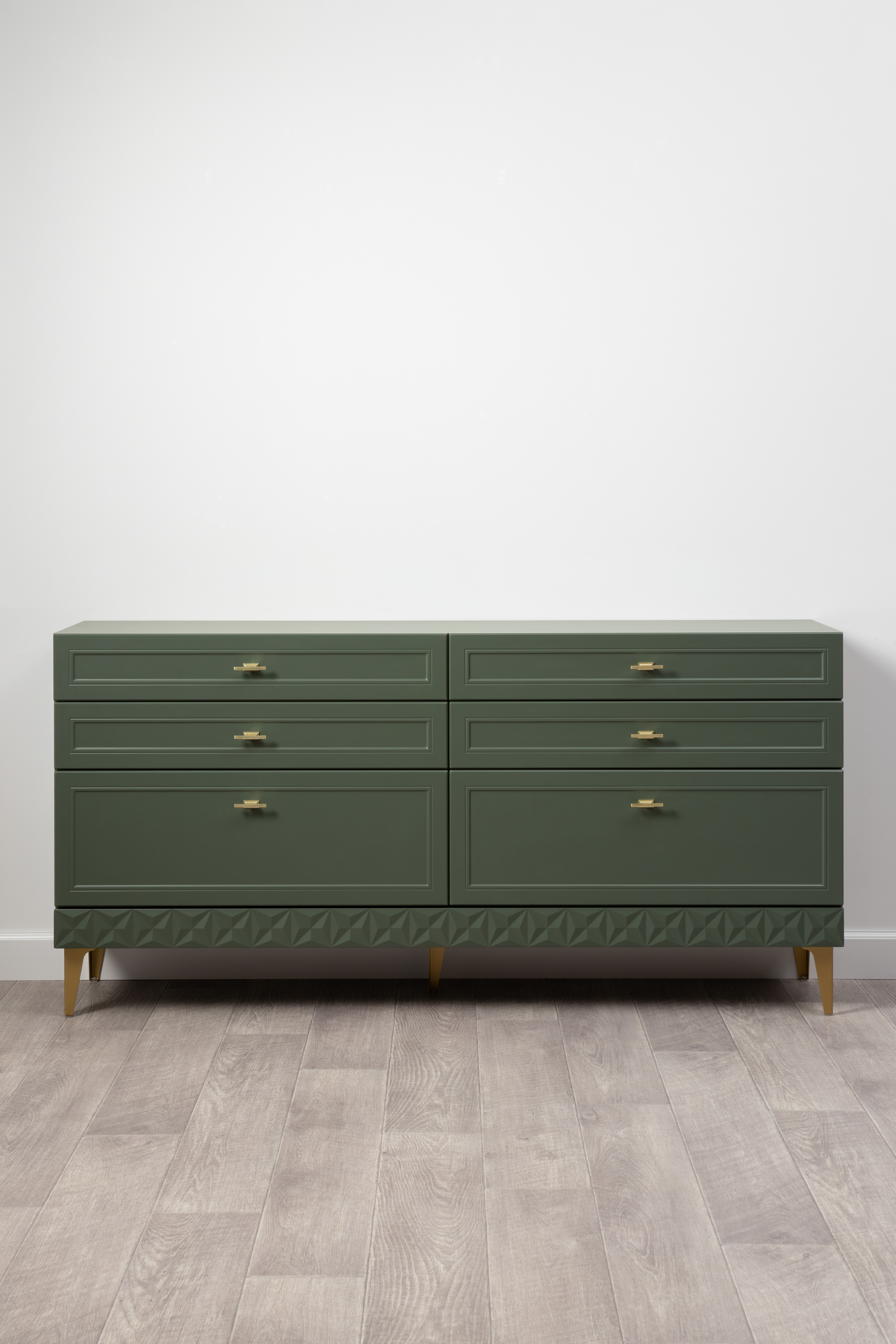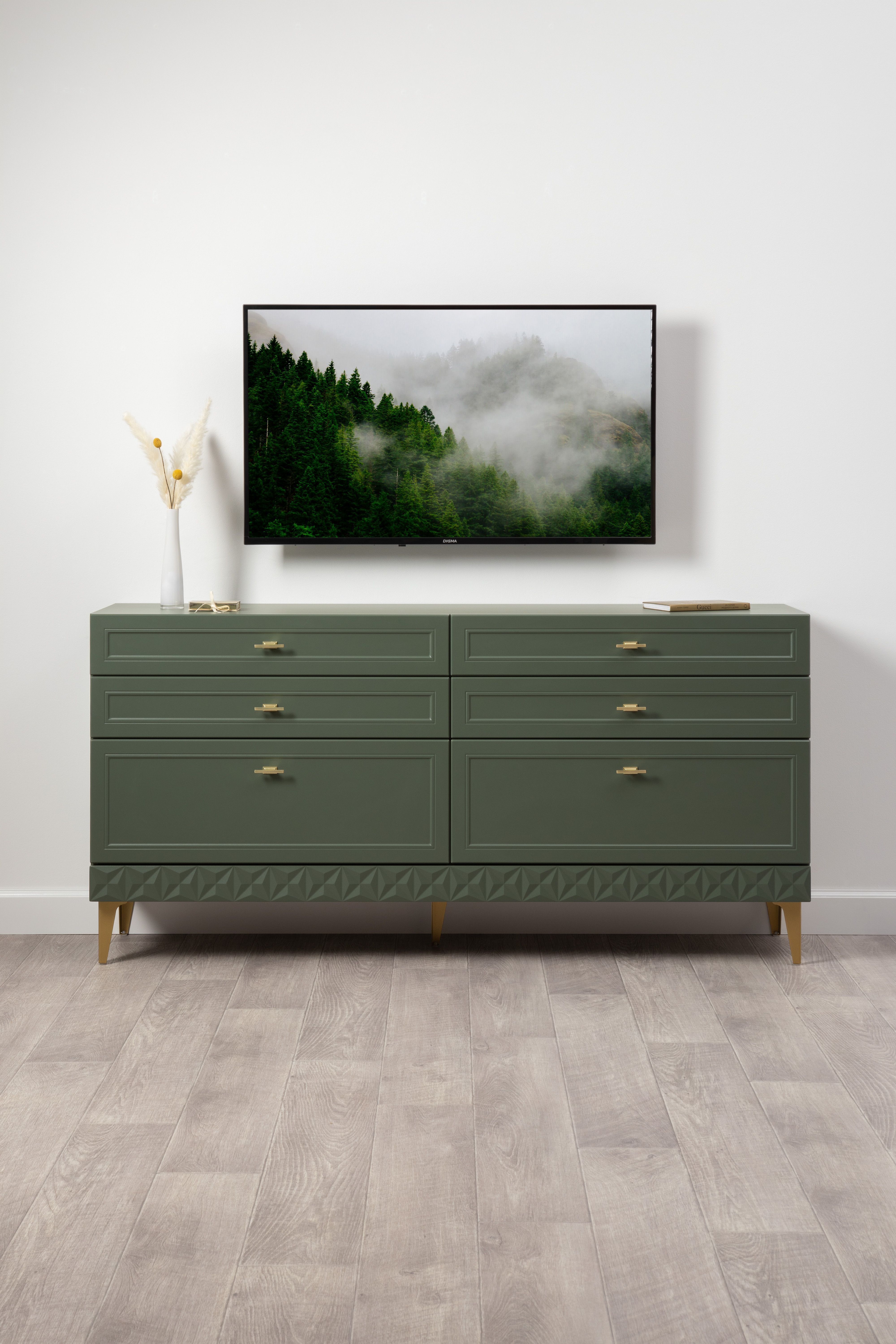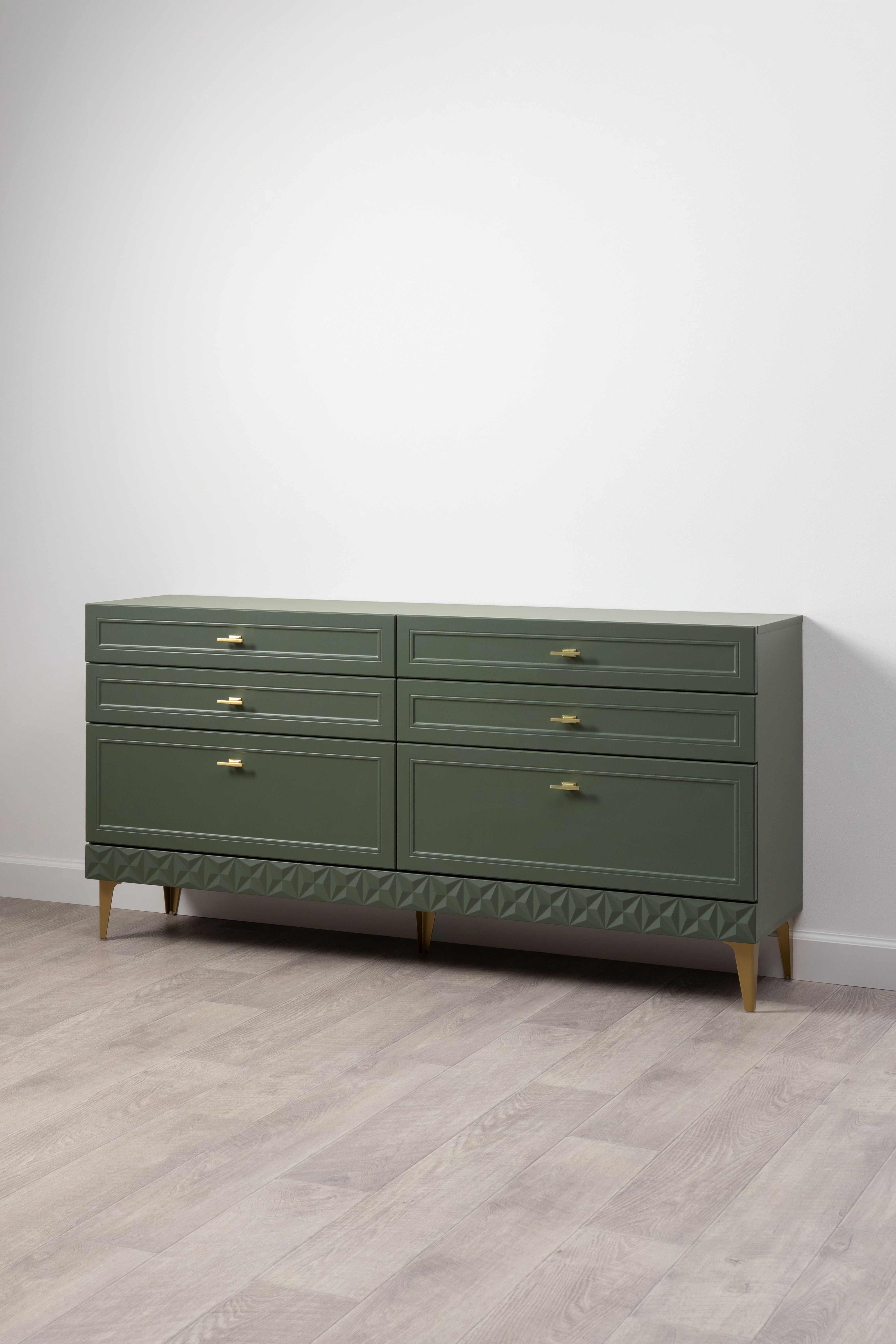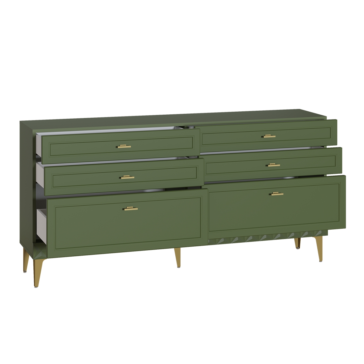 Комод Марион 16.256 дымчатый зеленый K521, олива шагрень AG 1050 ПВХ, белый PE шагрень