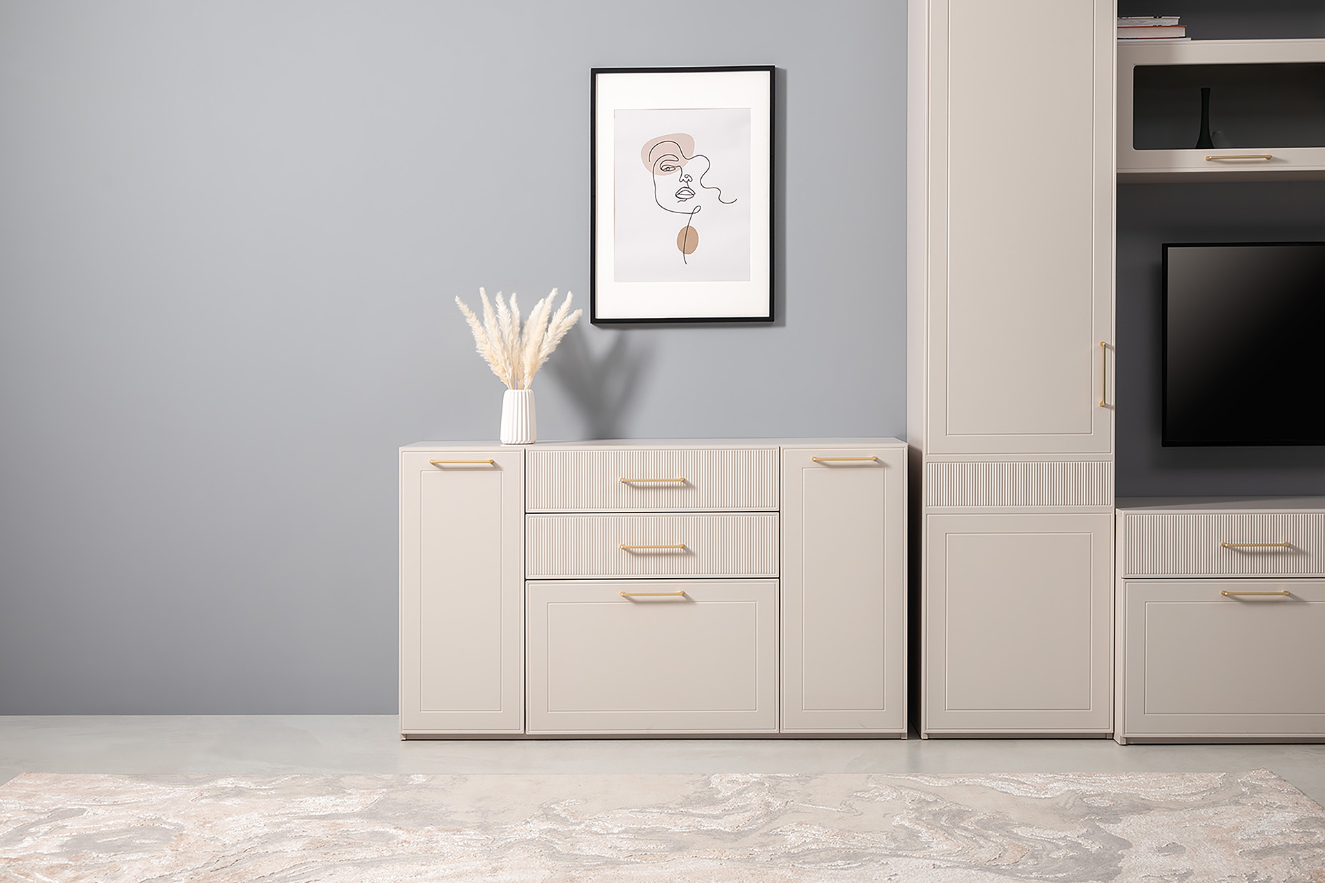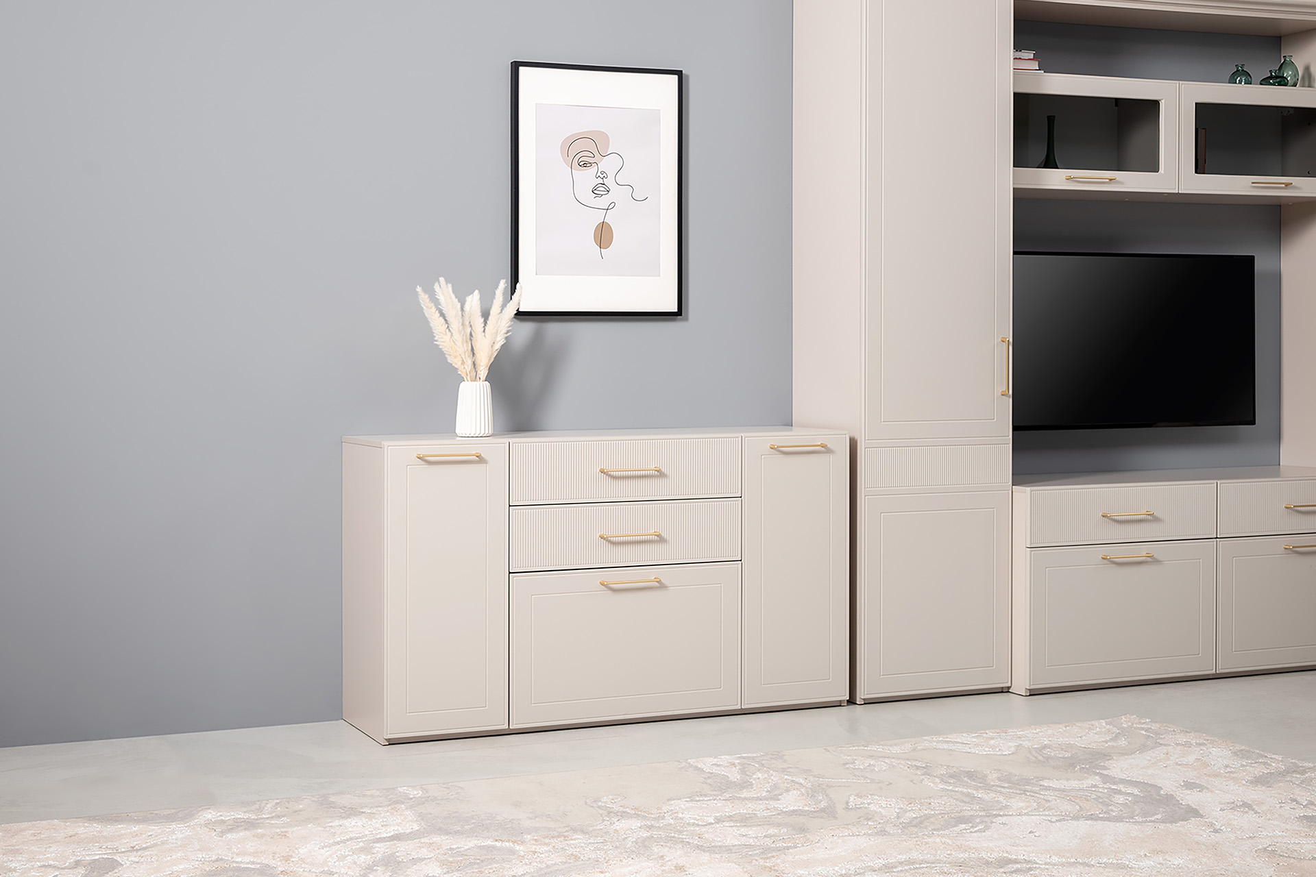 Комод Ричфорд 16.235 кашемир 5981 BS, моно керамика D166-2 ПВХ, белый PE шагрень
