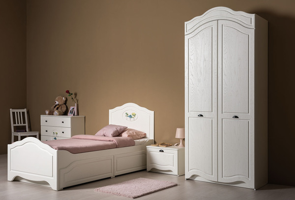 В коллекции Роуз 4 элемента с разным функционалом, которые помогут грамотно сформировать пространство детской комнаты: кровать с большим спальным местом и емкими выкатными ящиками будет шикарно смотреться при любой постановке в интерьере; вместительный комод сможет идеально распределить вещи и игрушки; просторный шкаф сохранит в порядке детский гардероб, а лаконичная, но немаловажная тумбочка отлично дополнит
