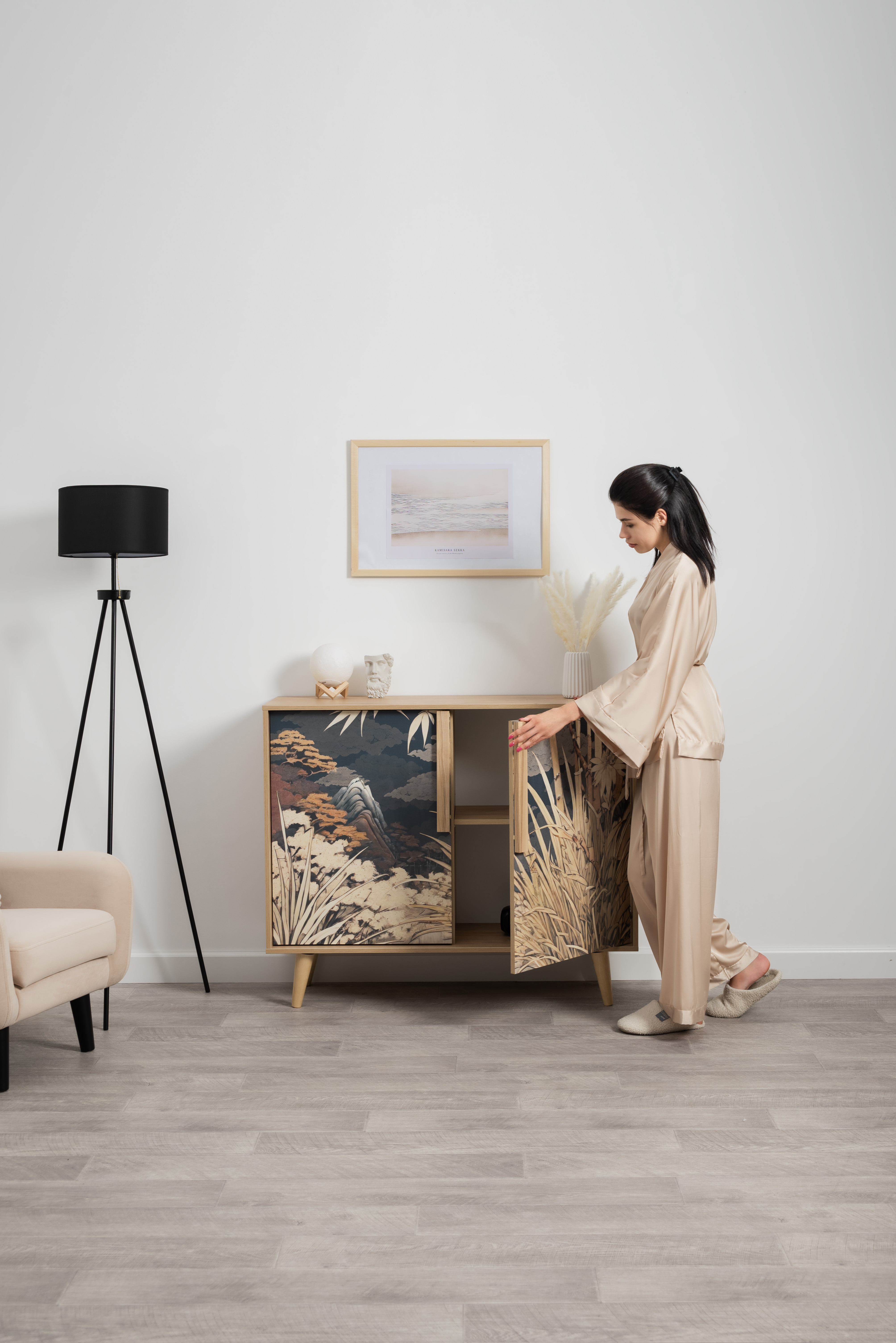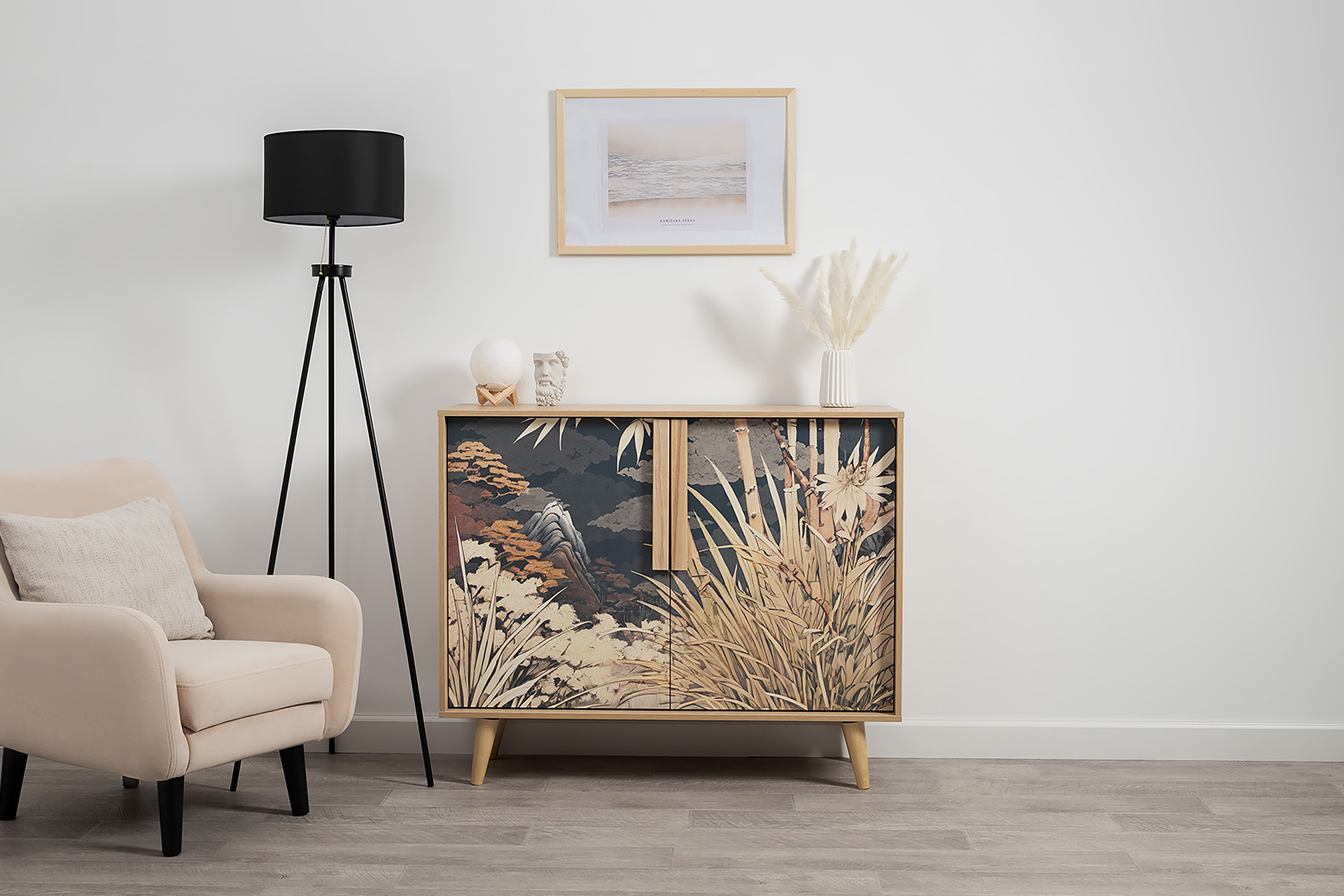 Комод Току 16.230.04 гикори рокфорд натуральный KO86 PW, белый PE шагрень, фотопечать