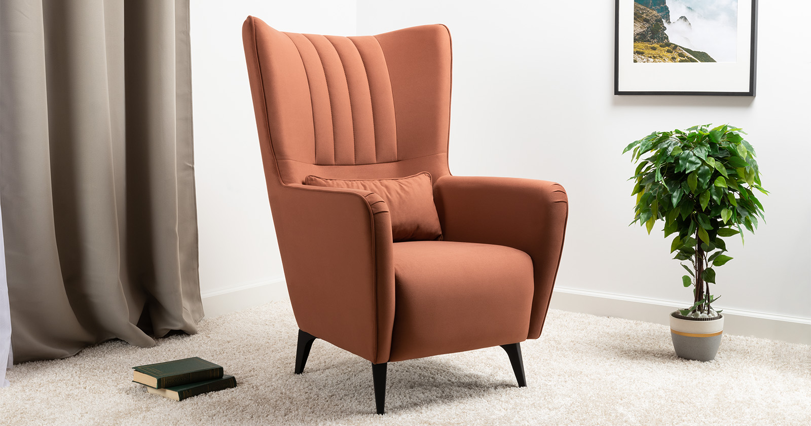 Классическое каминное кресло в современном прочтении. Элегантное кресло дополнит диван Ноэль или поможет организовать уголок для отдыха в гостиной, спальне или на лоджии. Высокая спинка с поясничной подушкой равномерно распределяет нагрузку на позвоничник, что позволяет качественно отдохнуть и расслабиться.