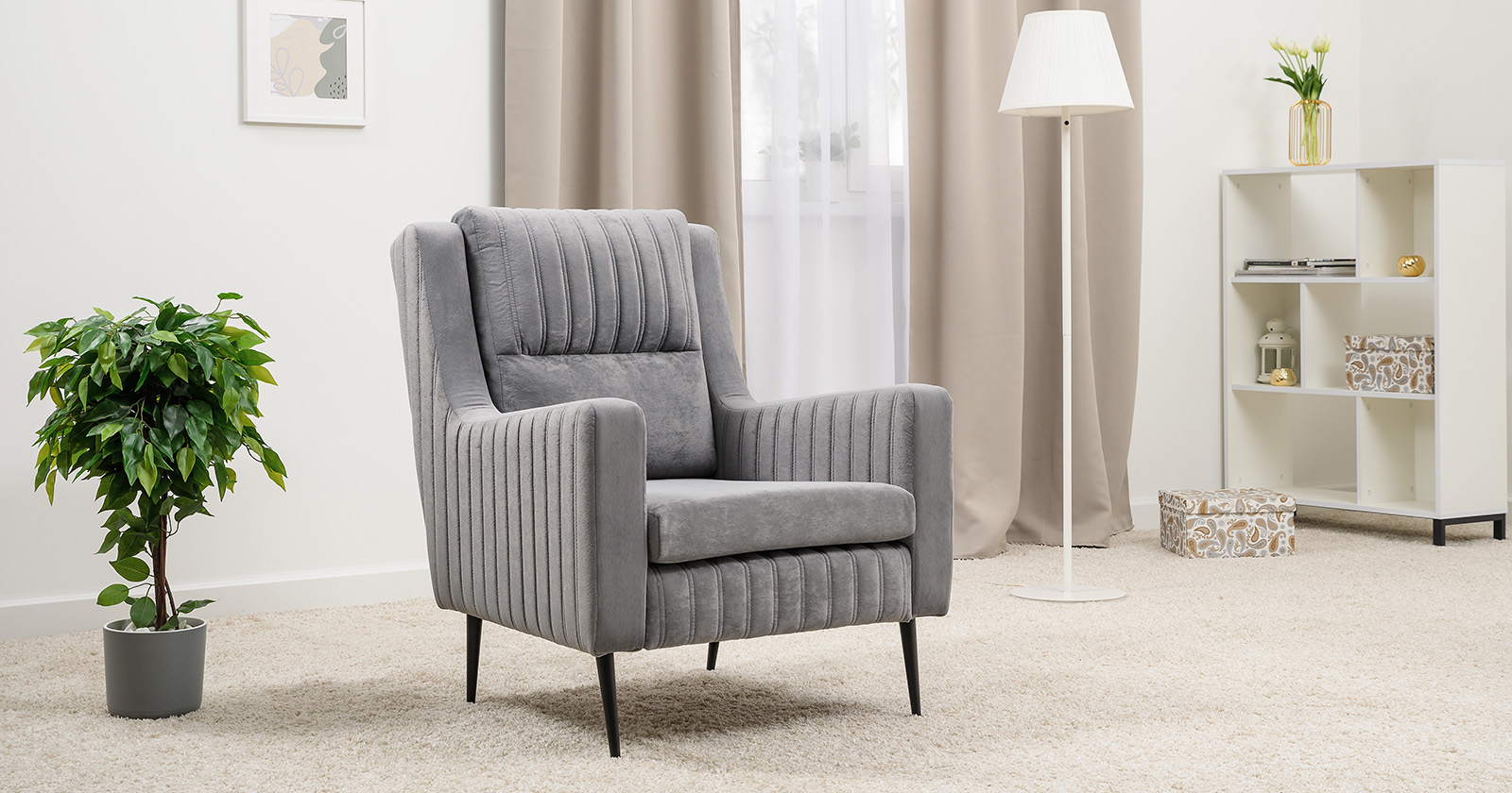 Кресло для отдыха Изабель ТК 735 велюр Романс грей cерый