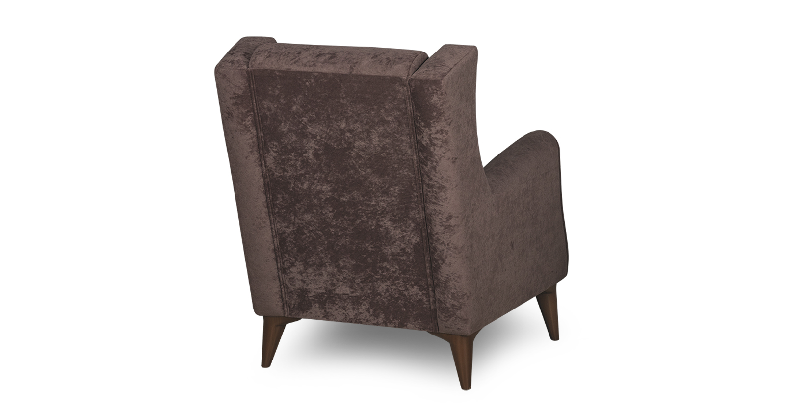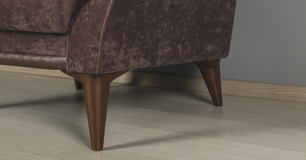 Декоративный кант из основной ткани по переднему торцу подлокотника; Утяжка спинки на 2 декоративные пуговицы из основного материала; Декоративный элемент царги из материала-компаньона.