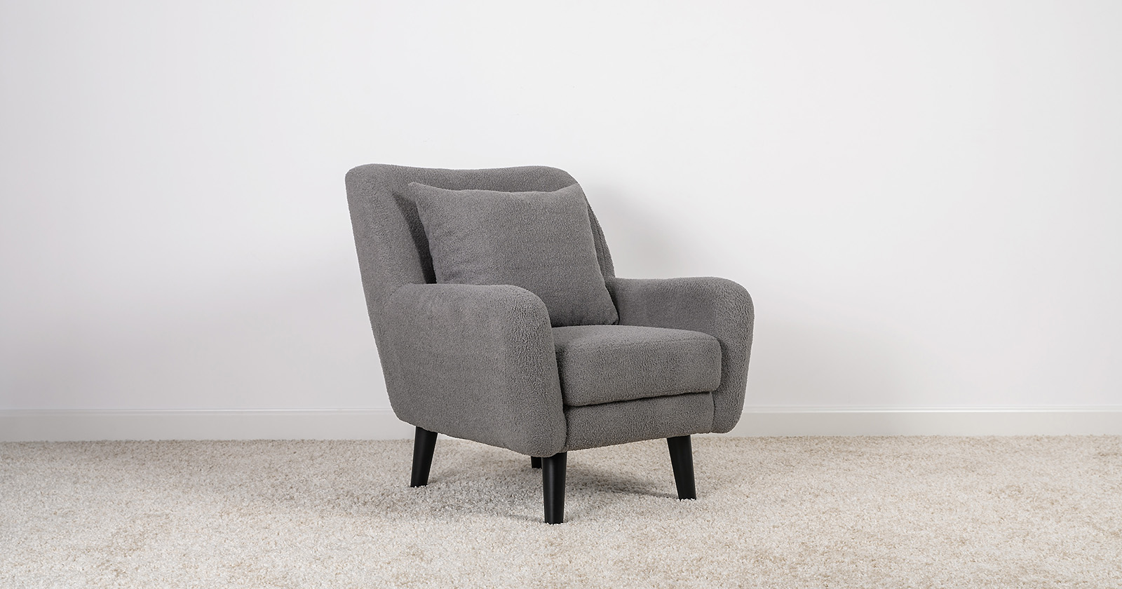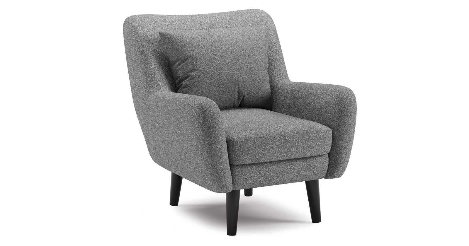 Кресло Шон станет вашим любимым местом для отдыха. Мягкое кресло с удобной спинкой даст вам расслабиться и отдохнуть. Благодаря небольшим размерам кресло подходит для многих современных квартир-студий или небольших комнат. Ткань букле делает кресло особенно уютным и мягким. Приспинная подушка в цвете кресла.