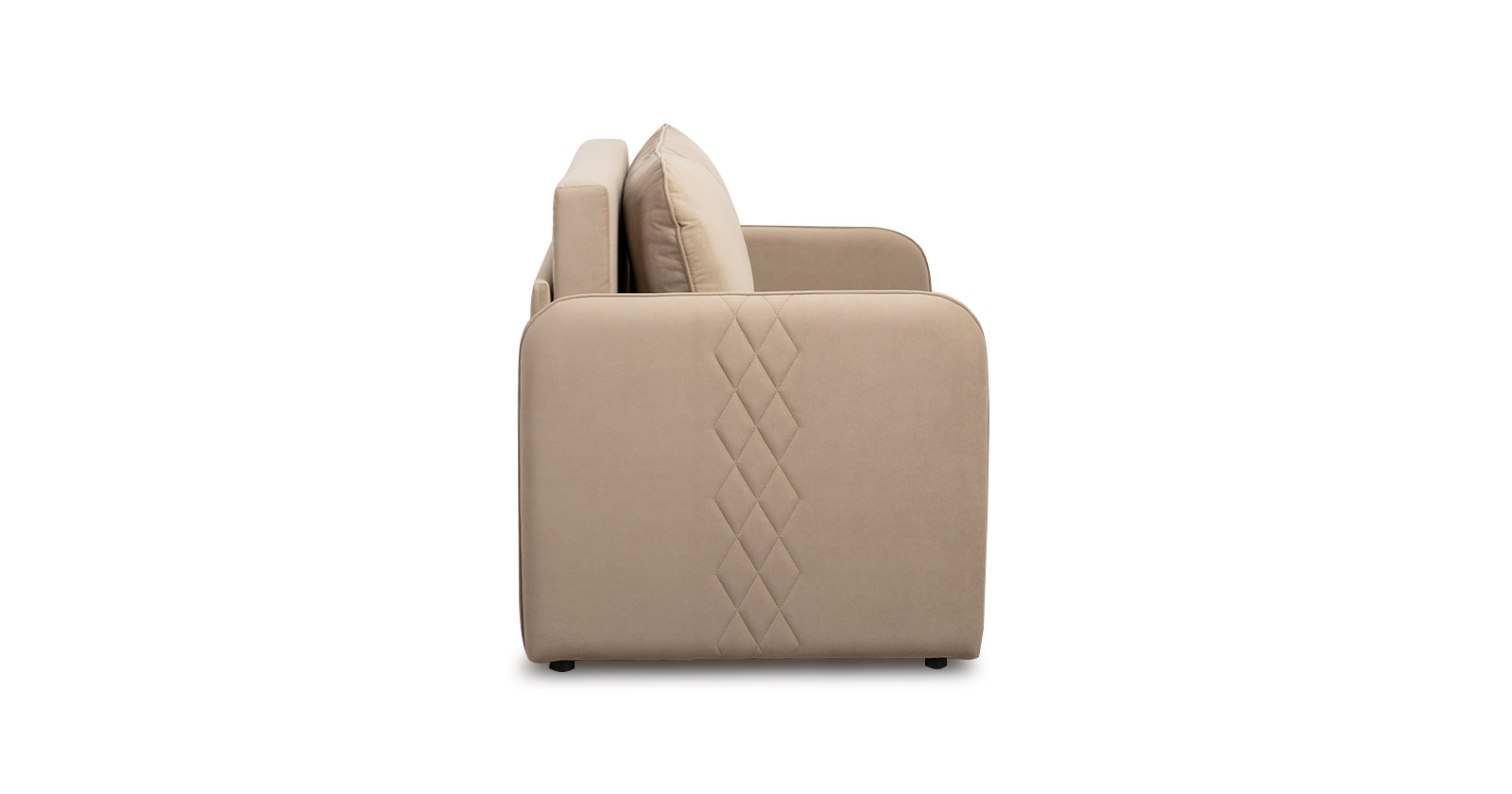 Стильный компактный диван для детской и гостиной. При своих скромных размерах он трансформируется в полноценное спальное место для детей и подростков. Лаконичный дизайн в виде декоративной стежки подчеркивает фактуру велюра, а небольшие размеры позволят разместить его в любом пространстве.