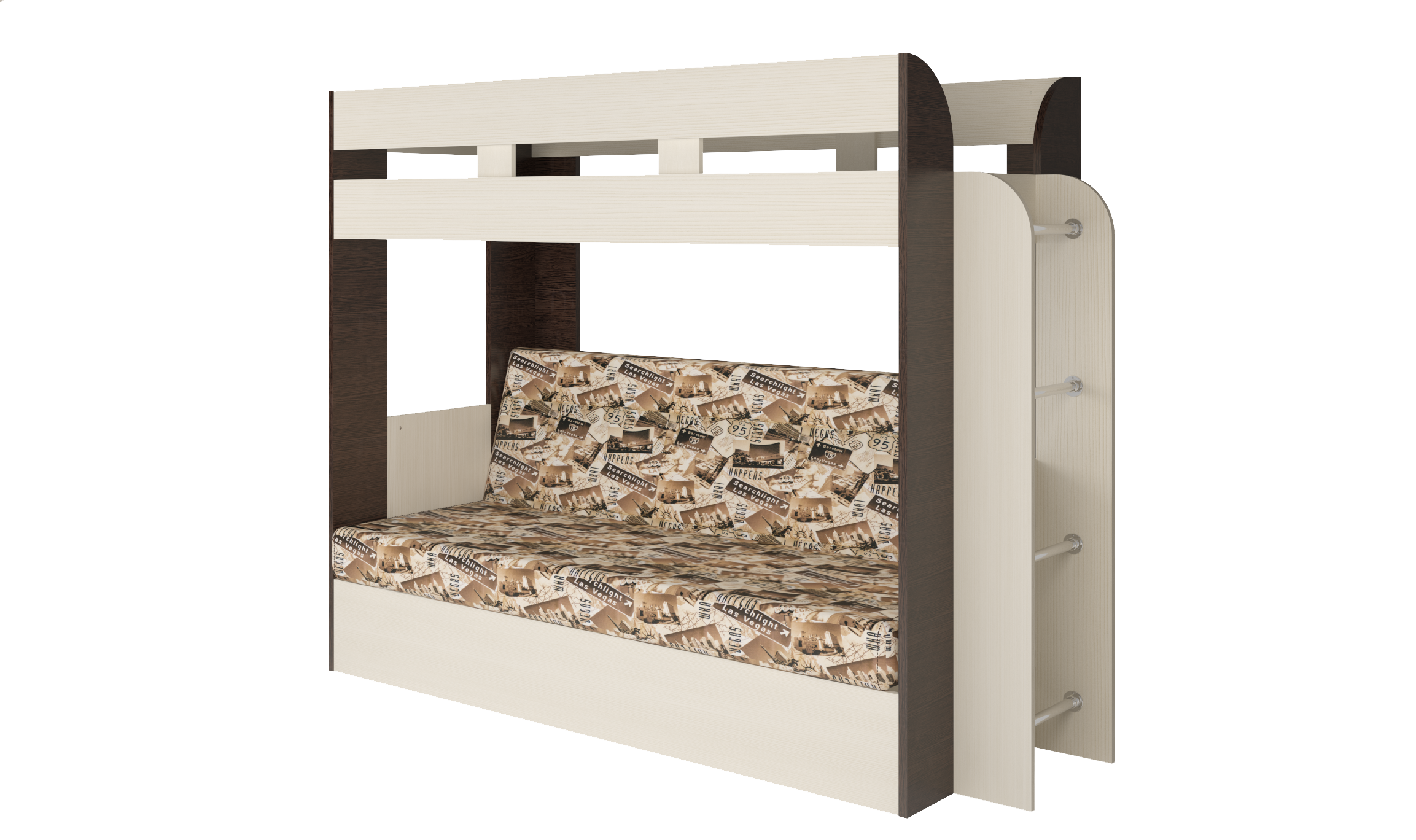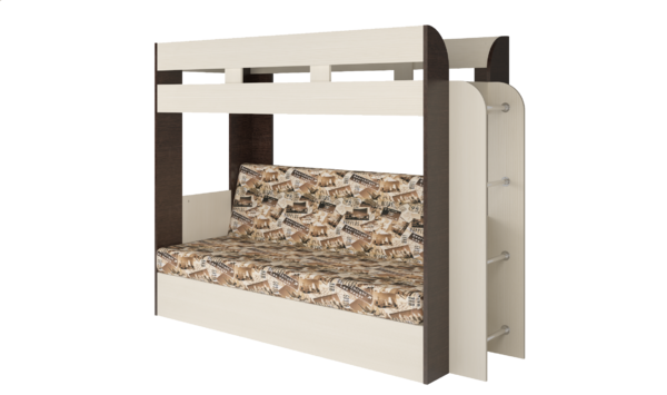 Двухъярусная кровать с диваном на первом уровне очень функциональна и удобно разместится влюбом интерьере.