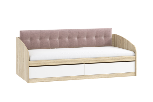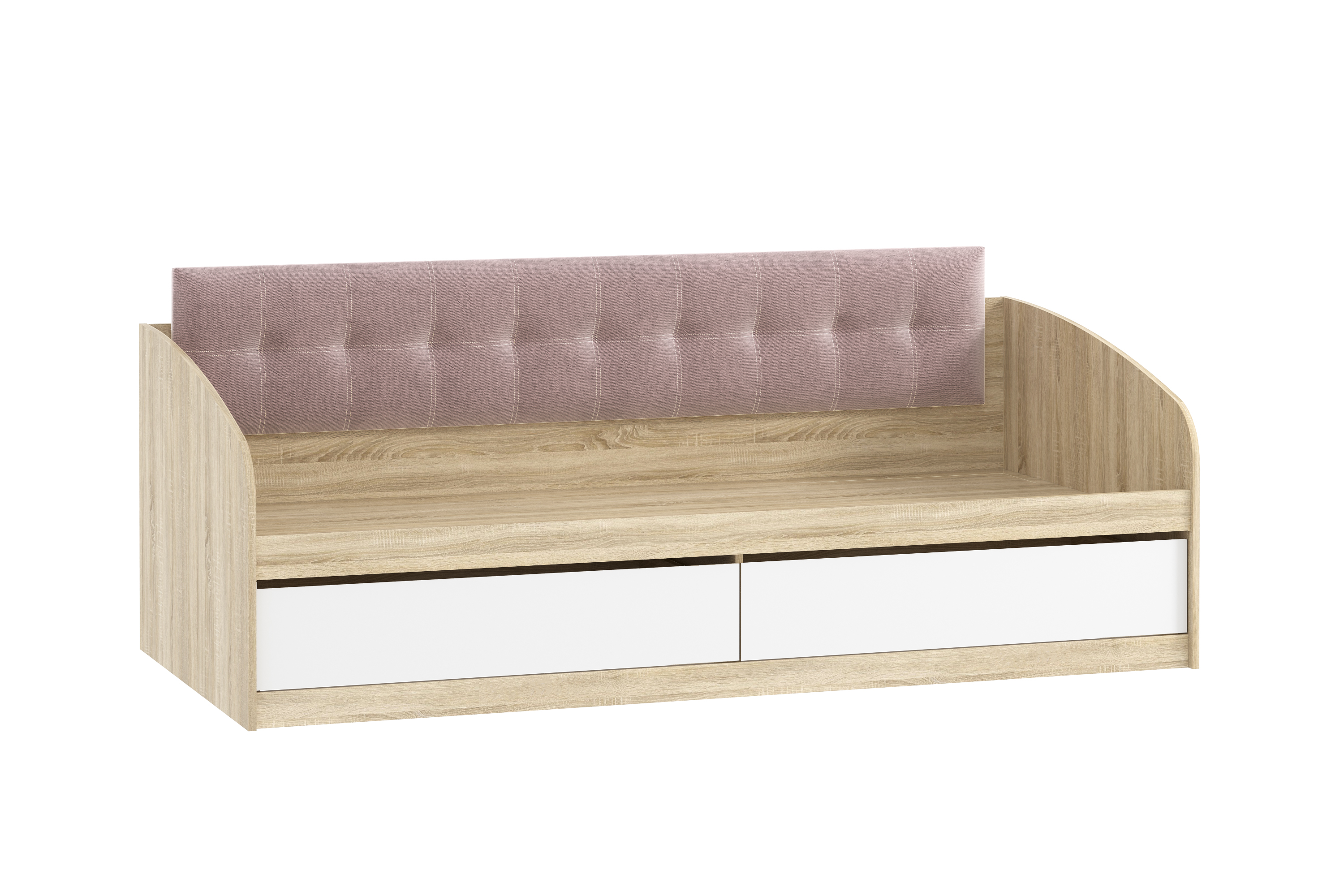 Кровать детская Фанк НМ 041.50 дуб сонома, белый с мягкой спинкой Дабл велутто 16 велюр бежевый