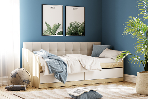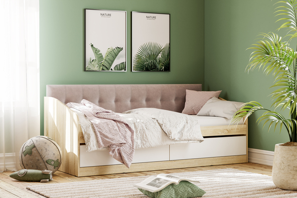 Одноместная кровать Фанк 41.50 с лаконичным дизайном идеально подходит для оформления уютного спального уголка в детской. Вместительные бельевые ящики удобны для хранения постельных принадлежностей. Боковая спинка предотвращает истирание настенного покрытия. Кровать полностью безопасна для ребенка: у модели нет острых углов и накладных ручек на фасадах ящиков. Дополнительно рекомендуем приобрести ограждение 014.43-01 и мягкую спинку Дабл. Ограждение защитит ребенка во время сна, а мягкий элемент сделает чтение книги или отдых на кровати более комфортным.
