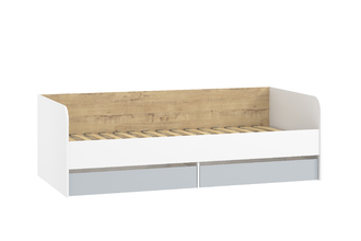 Односпальная кровать  подходит для детской мальчиков и девочек в современном, скандинавском и стиле лофт. В кровати предусмотрены ящики для хранения постельного белья или игрушек. Натуральный материал ламелей не вызывает аллергии и безопасен для здоровья. Изогнутая форма ламелей придает основанию спального места большую прочность и дополняет ортопедические свойства матраса.