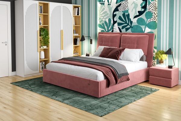 Кровать Ester 1800 велюр Ультра коралл с ортопедическим основанием и подъемным механизмом