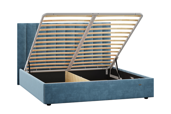 Подъемный механизм легок в управлении, а вместительный короб внутри кровати подойдет для хранения подушек, белья и других вещей. Мягкие тканевые ручки облегчают процесс подъема основания. Купить кровать можно удобным способом: оформить заказ в интернет- магазине, положив товар в корзину. С кроватями можно приобрести комод и тумбу «Ester». Ткань обивки возможно выбрать в цвет с кроватью, из представленных вариантов велюра.