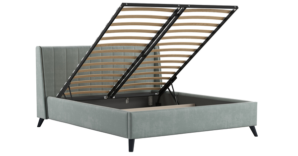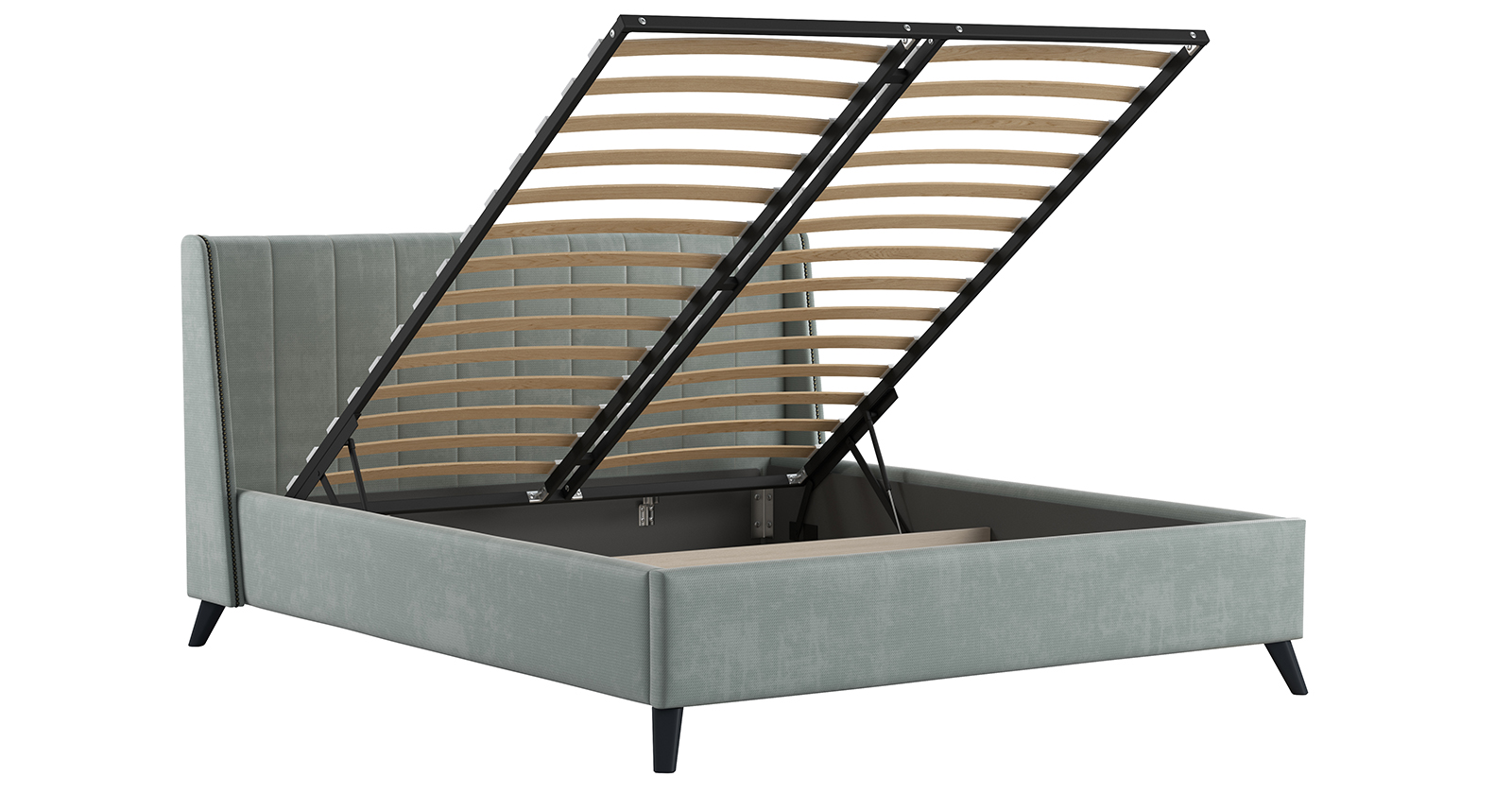 Кровать Мелисса 160 велюр серо-синий с ортопедическим основанием и подъемным механизмом