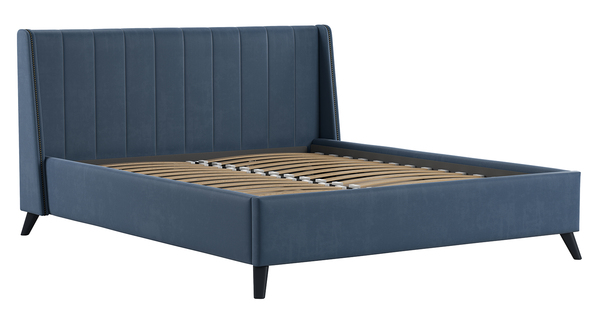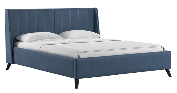 Кровать Мелисса 160 велюр серо-синий с ортопедическим основанием и подъемным механизмом