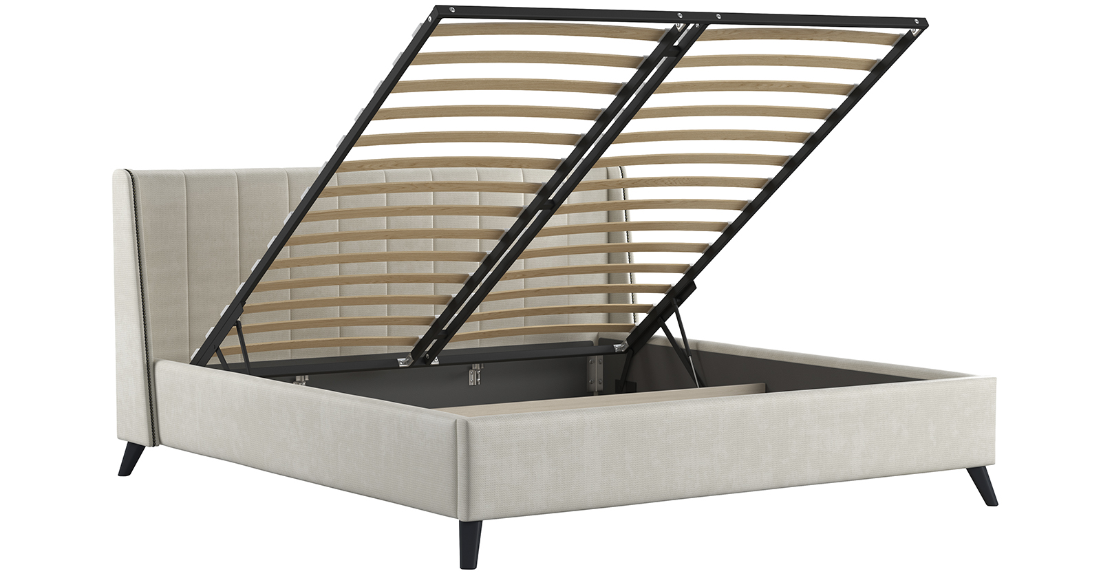 Кровать Мелисса 160 велюр светло-бежевый с ортопедическим основанием и подъемным механизмом