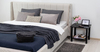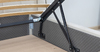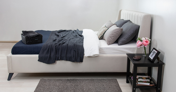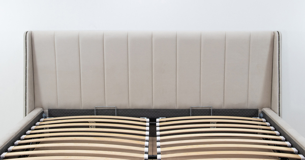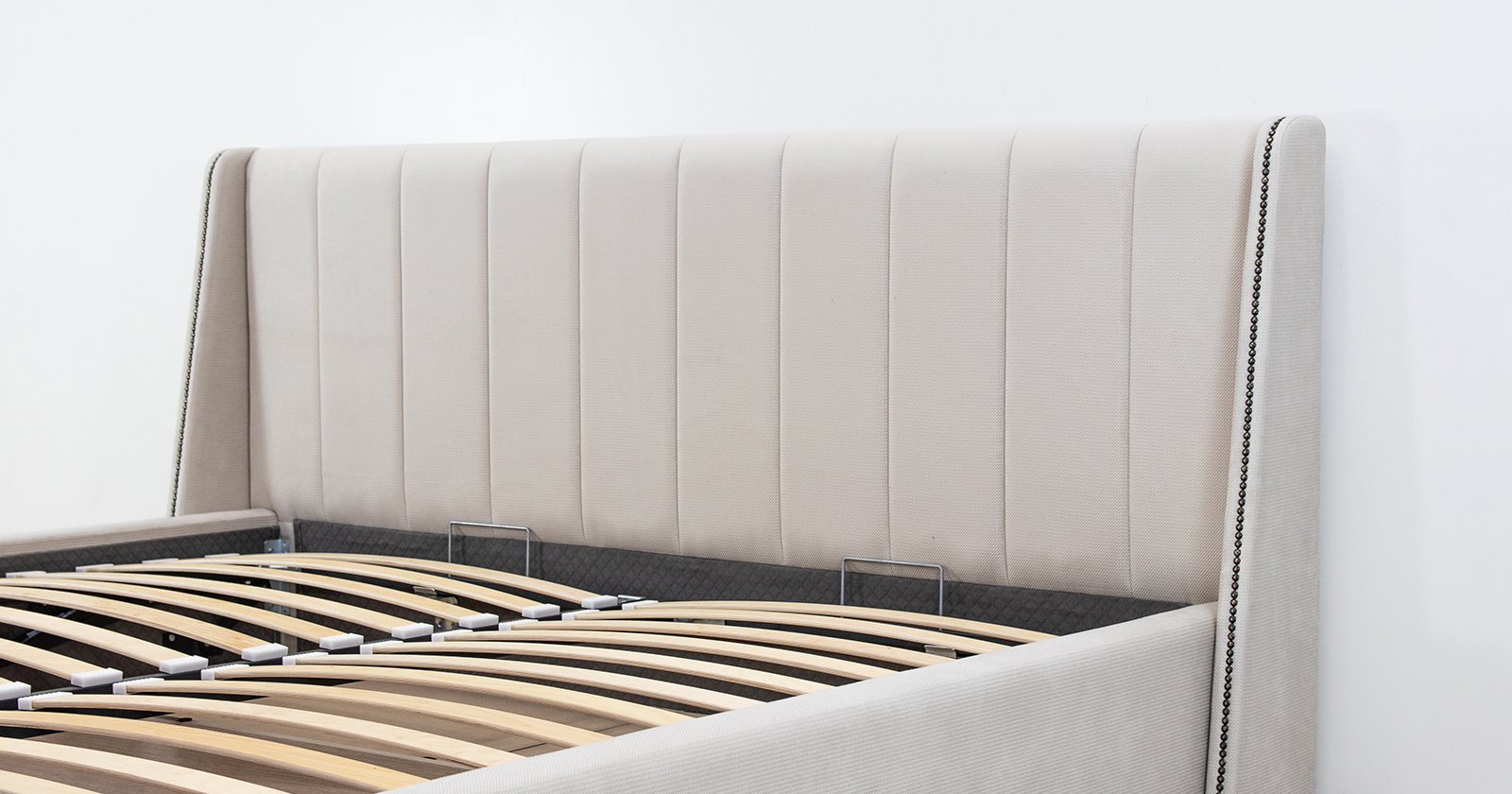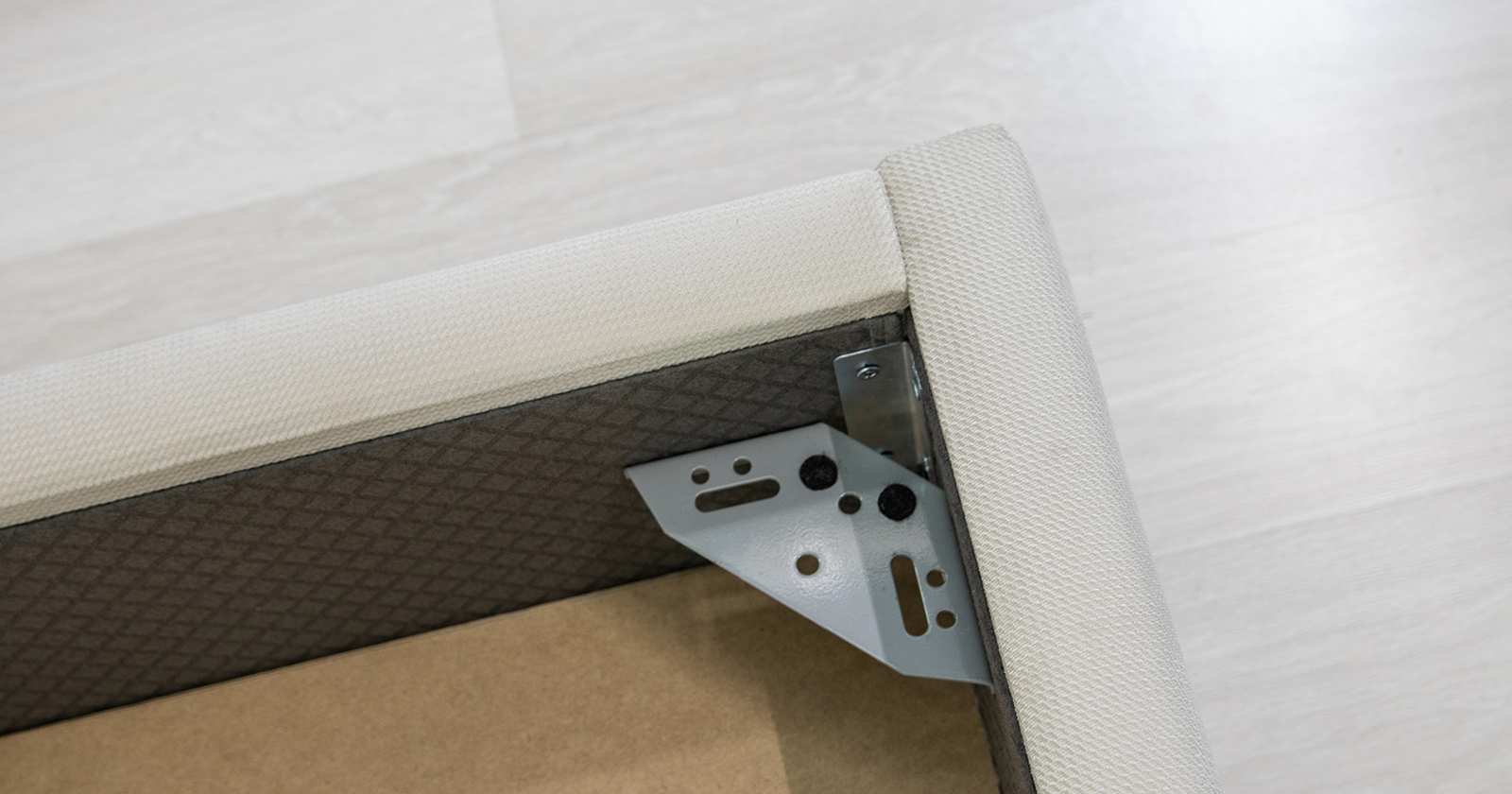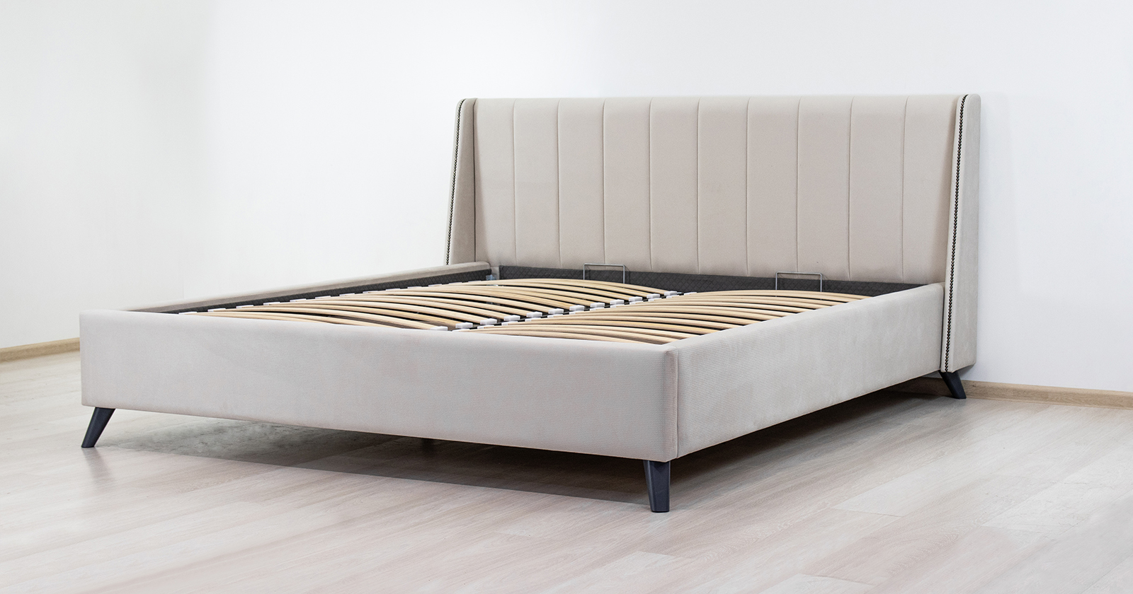 Основание кровати укомплектовано матрасодержателями. Жесткое кроватное дно из МДФ 6 мм. Задняя стенка изголовья выполнена в тех. ткани (спанбонд)