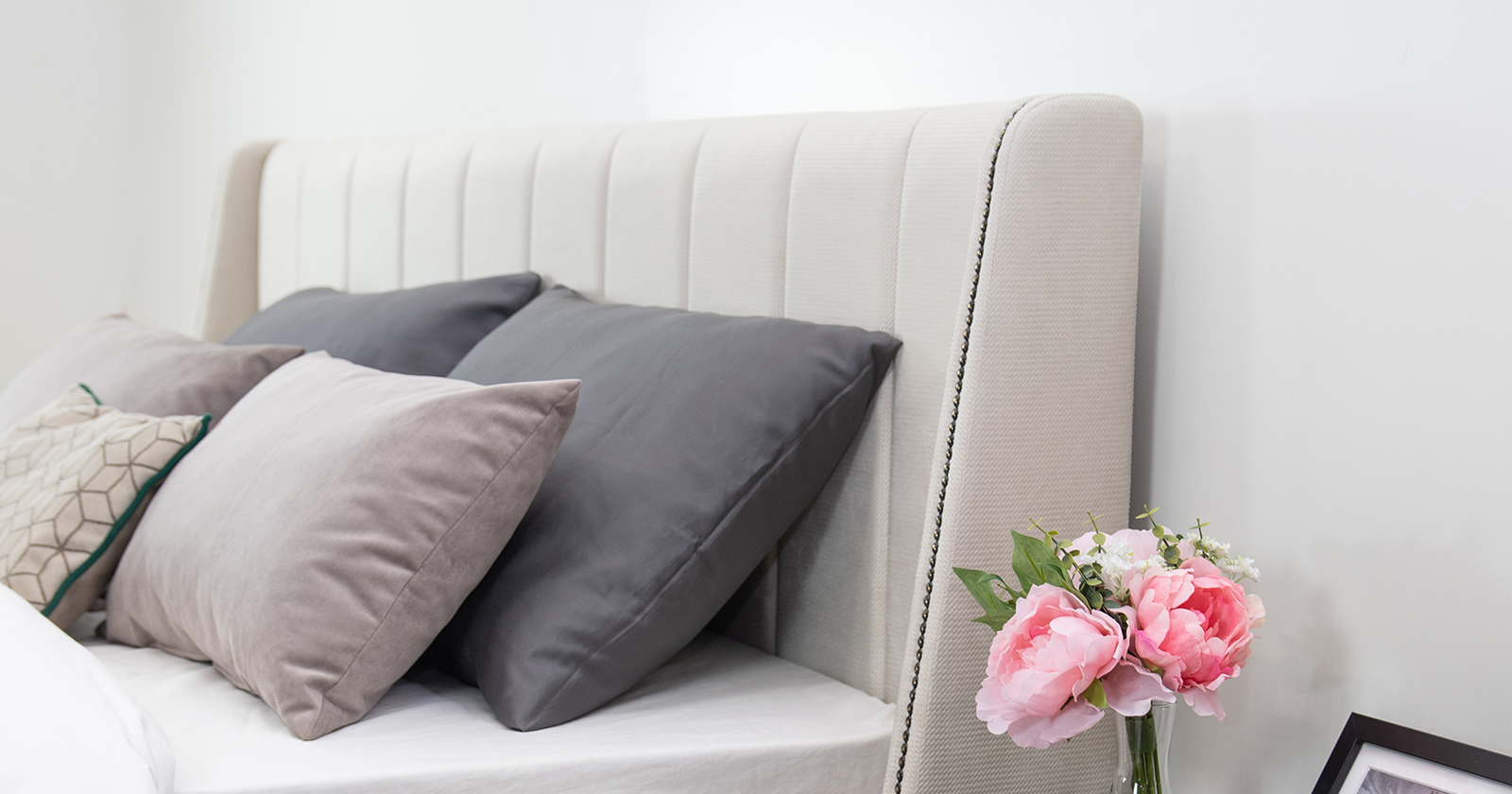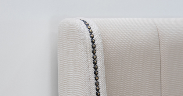 Изголовье с боковыми накладками, декорированными мебельным молдингом-гвоздиками