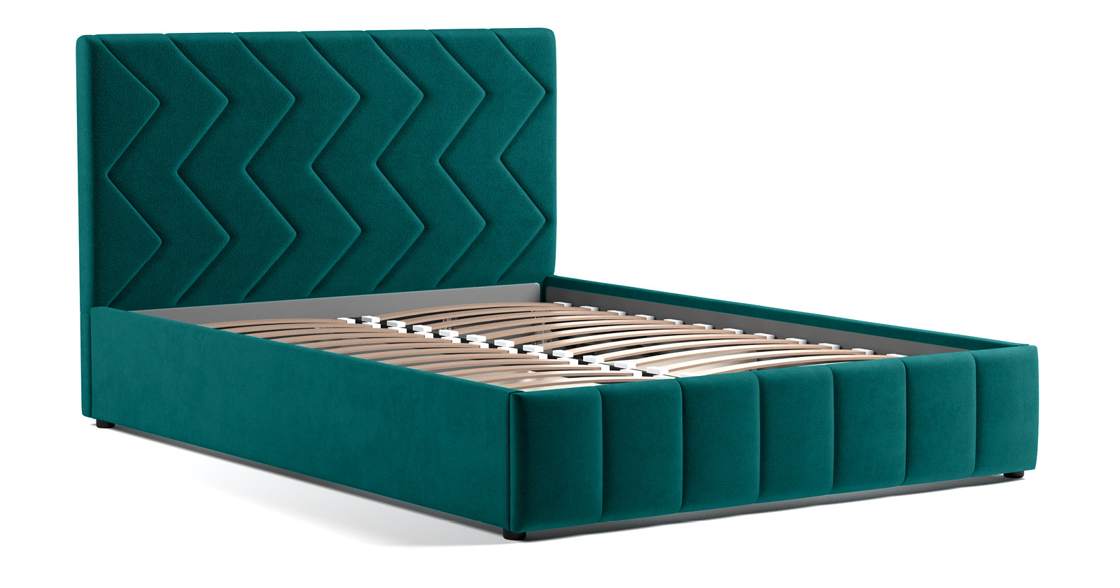Кровать Милана 140 велюр сине-зеленый с ортопедическим основанием и подъемным механизмом