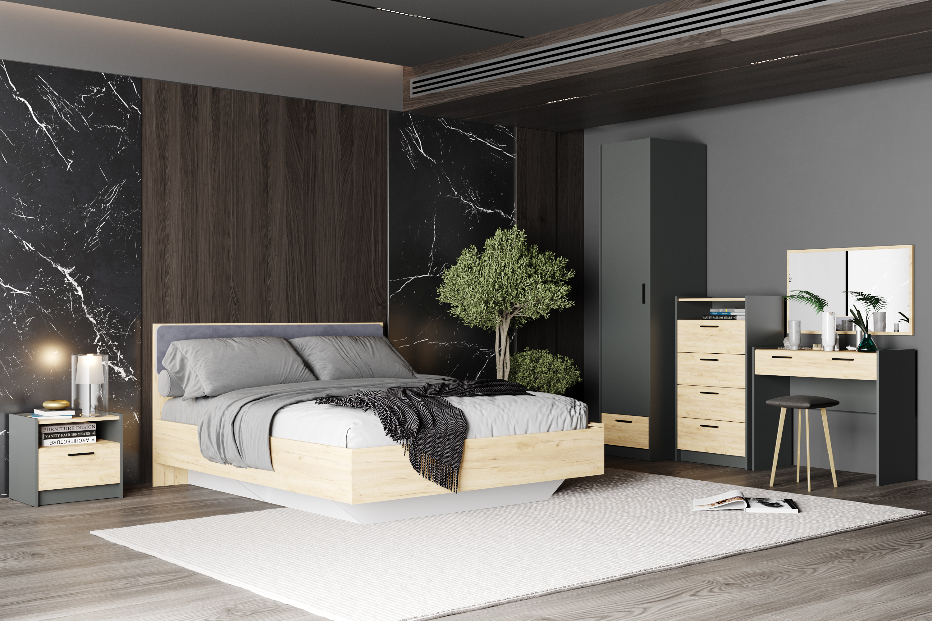 Кровать из новой коллекции Оттавия представлена в двух цветах на выбор – белый и антрацит. Кровать отлично подойдет для любого современного интерьера, как скандинавского, так и урбанистического.