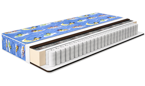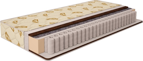 Жесткий матрас на основе независимого блока пружин с наполнением из кокосового волокна и гипоаллергенного хлопкового ватина. Этот природный  материал, пропитанный латексом, обладает бактерицидным свойством, устойчив к любой влажности и сохраняет свои характеристики в течение многих лет. Обладает высокими ортопедическими свойствами.